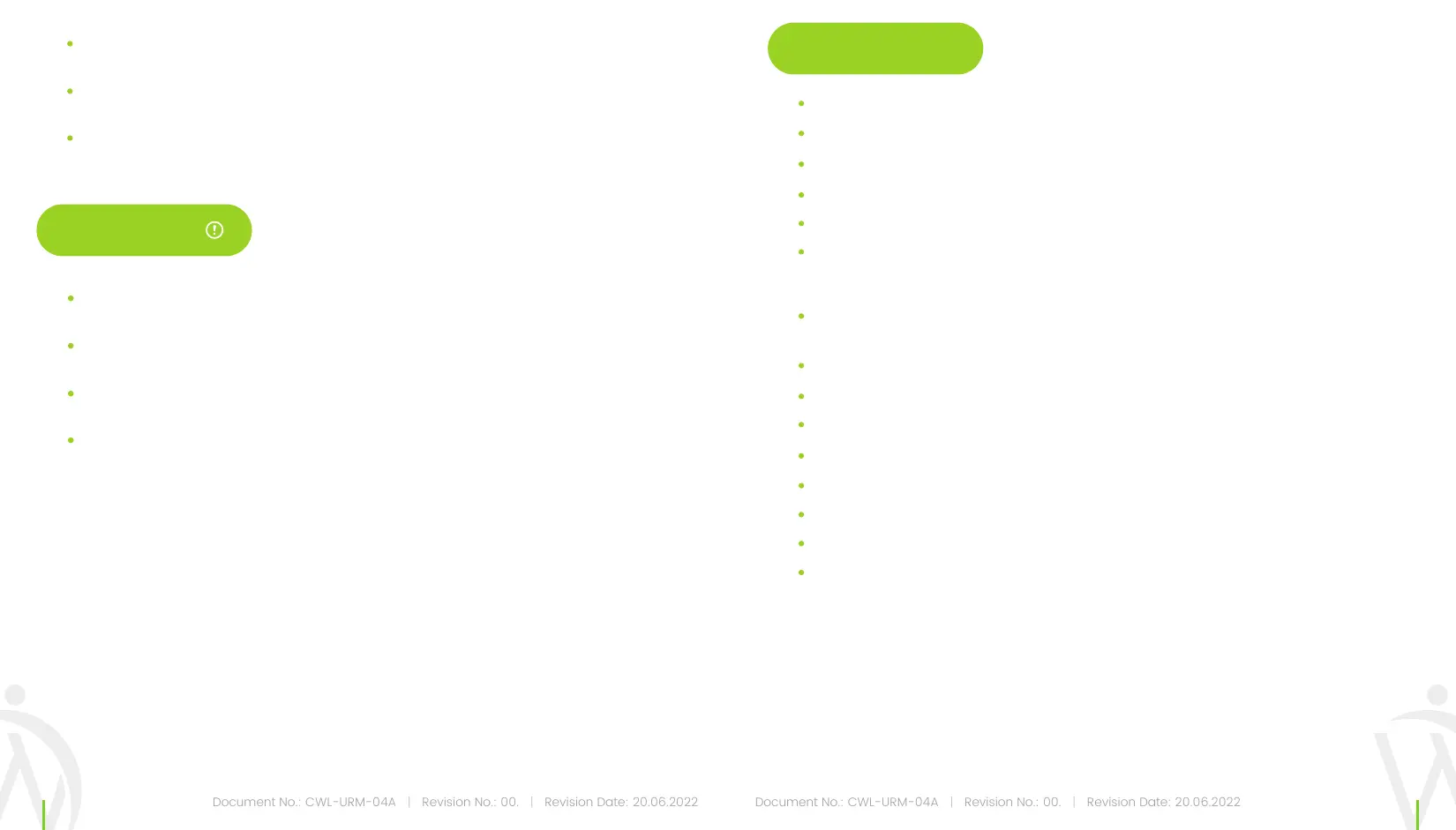 Document No.: CWL-URM-04A | Revision No.: 00. | Revision Date: 20.06.2022