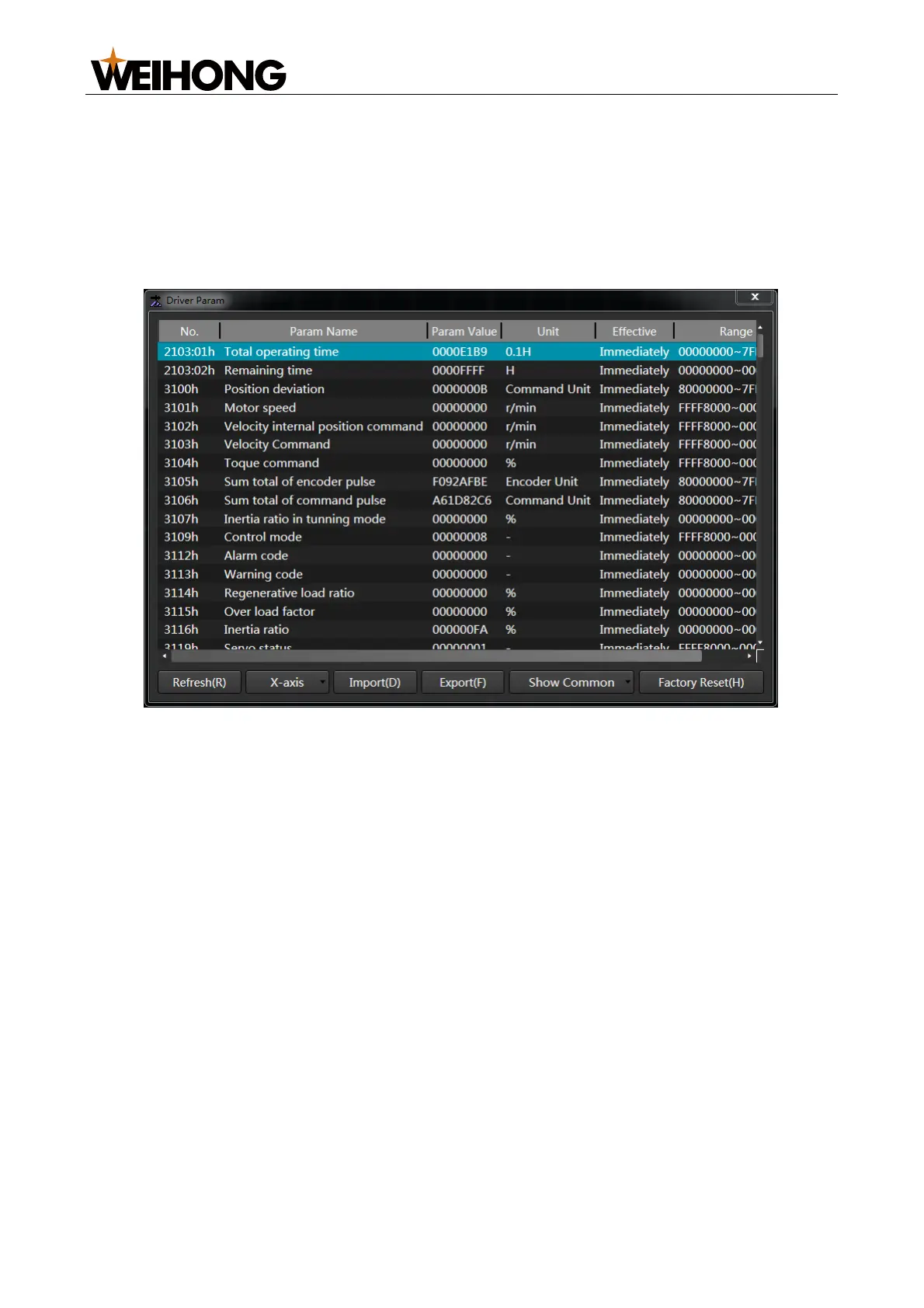 1. In the menu, click System > Drive Parameters to open the Driver Param window: