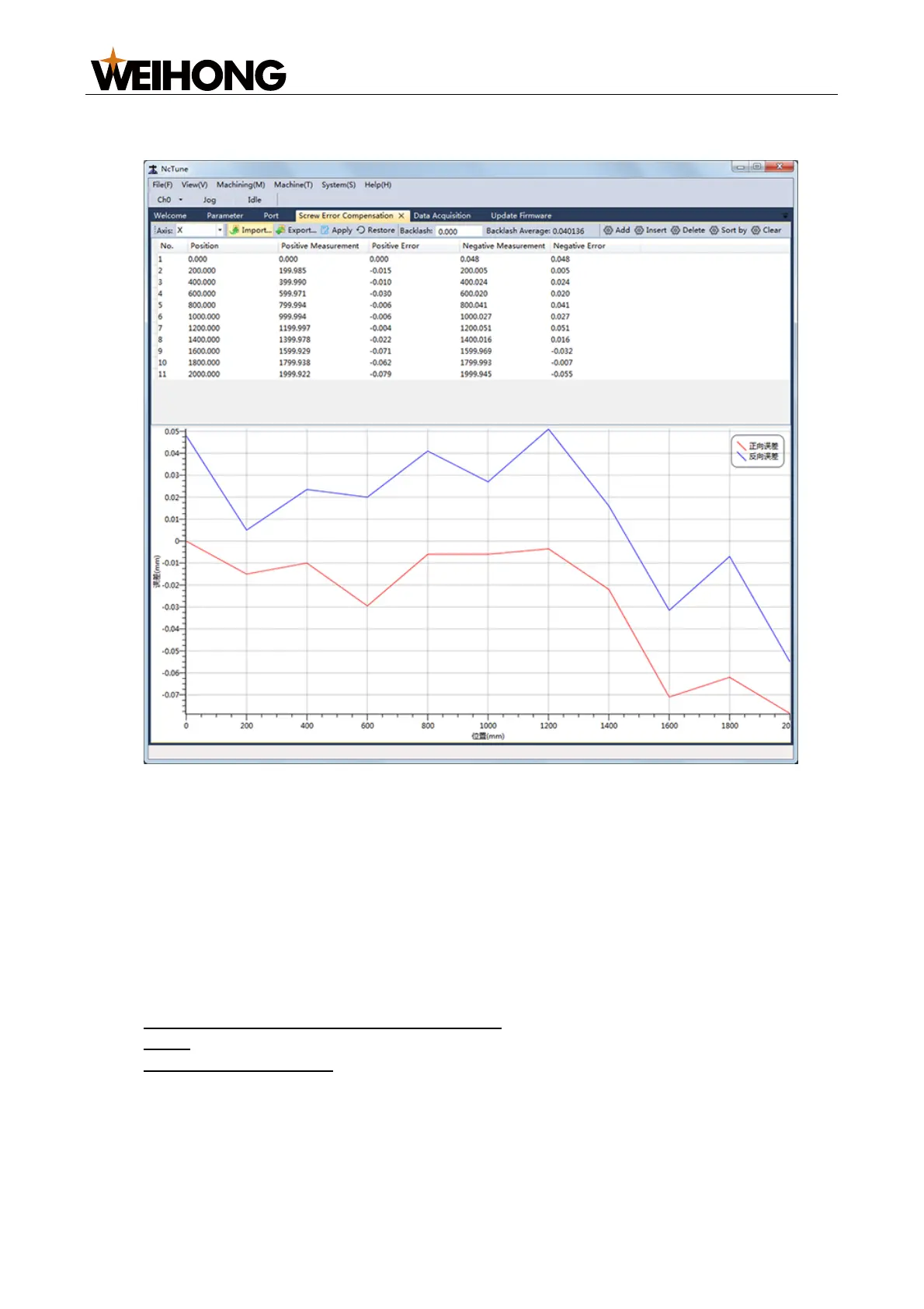 7. To import a compensation file, click Import. NcTune generates the error curve