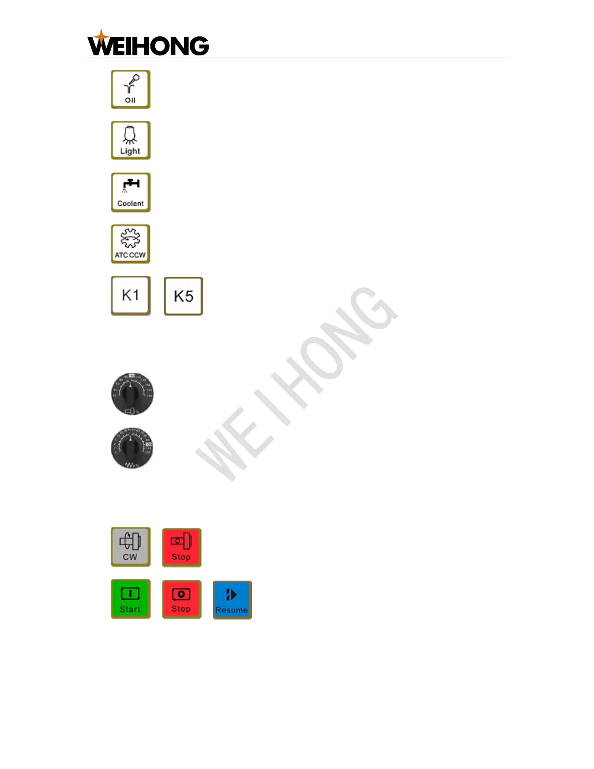 • : used to turn on/off the coolant.
