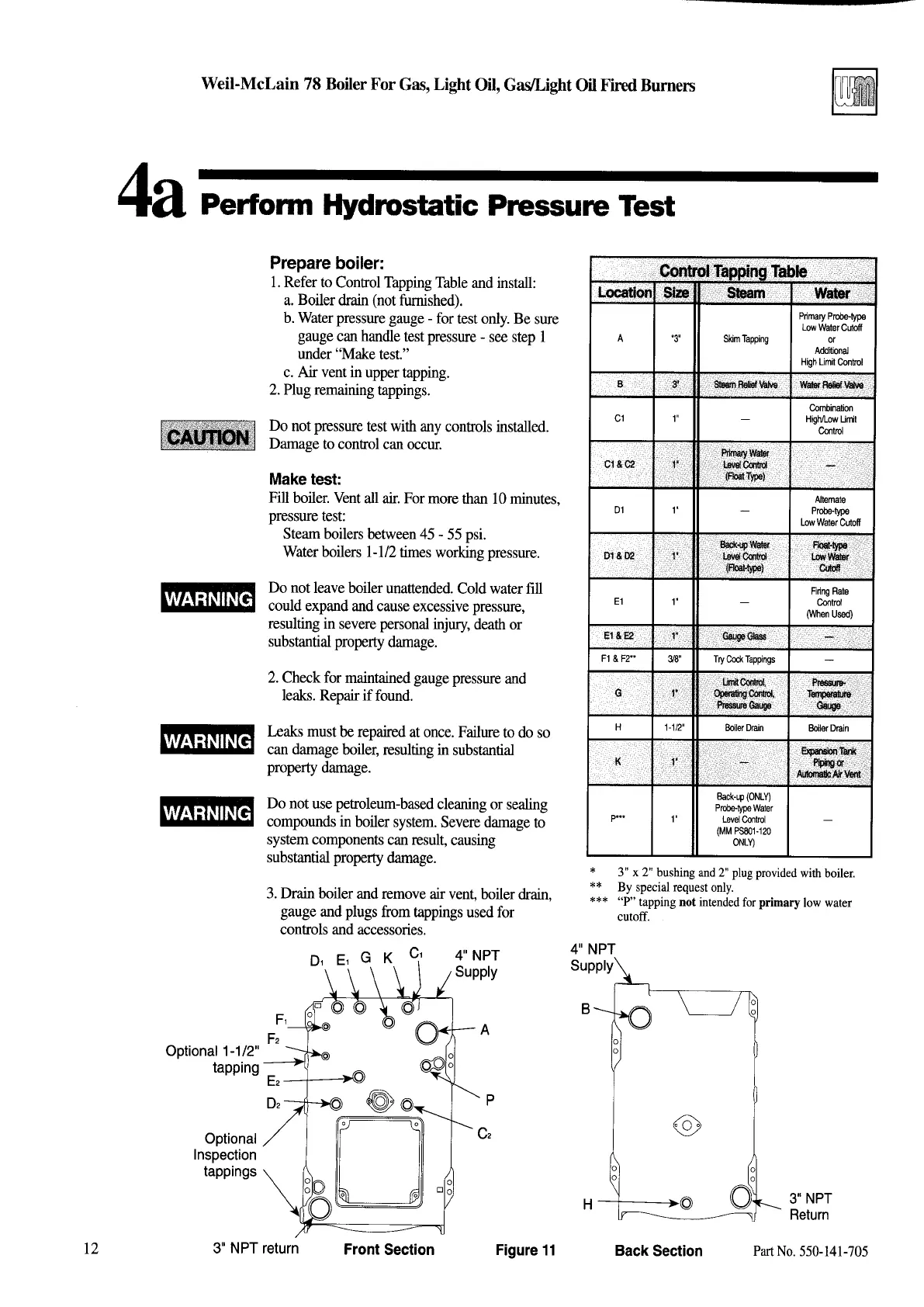 Weil-McLain 78 - Perform Hydrostatic Pressure Test