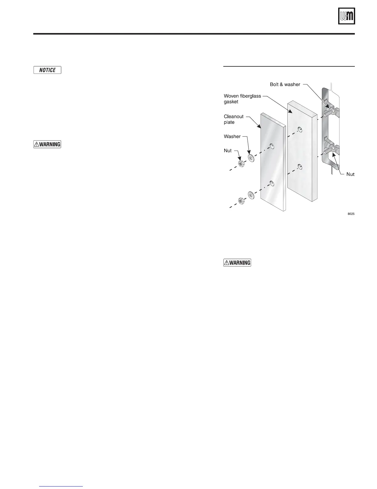 Cleanout plates must be installed gas-tight to prevent