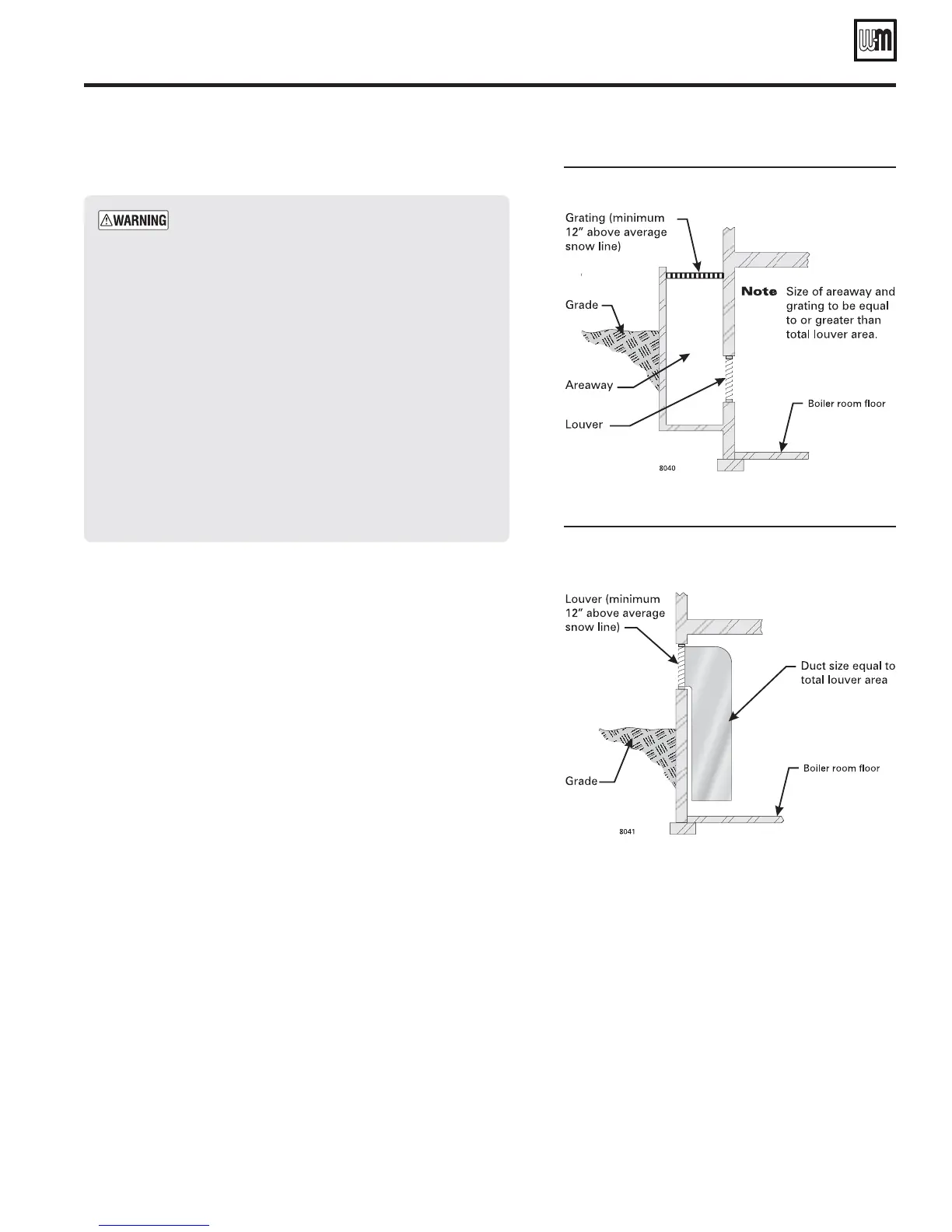 Do not install an exhaust fan in boiler room. Incor-