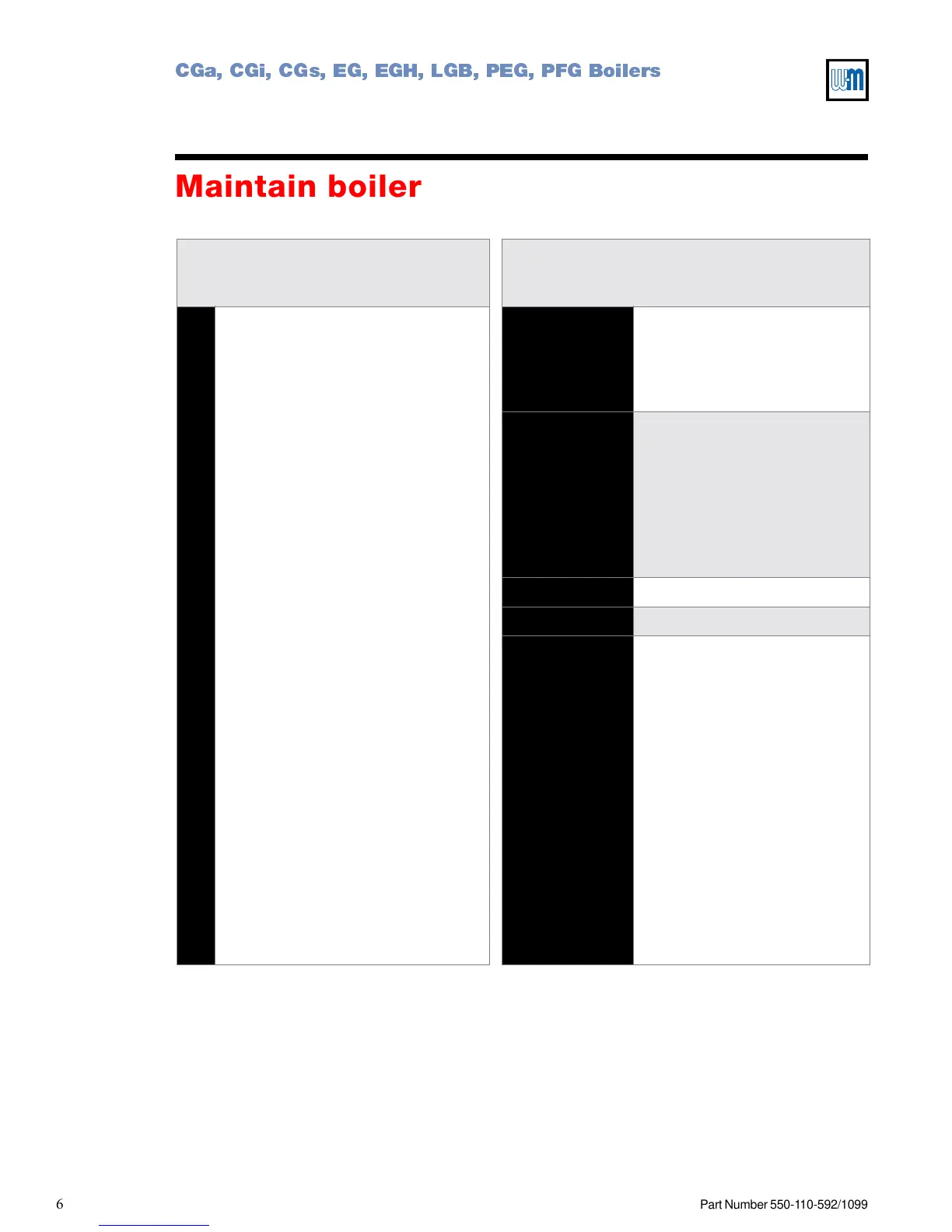 Maintain boiler using schedule below