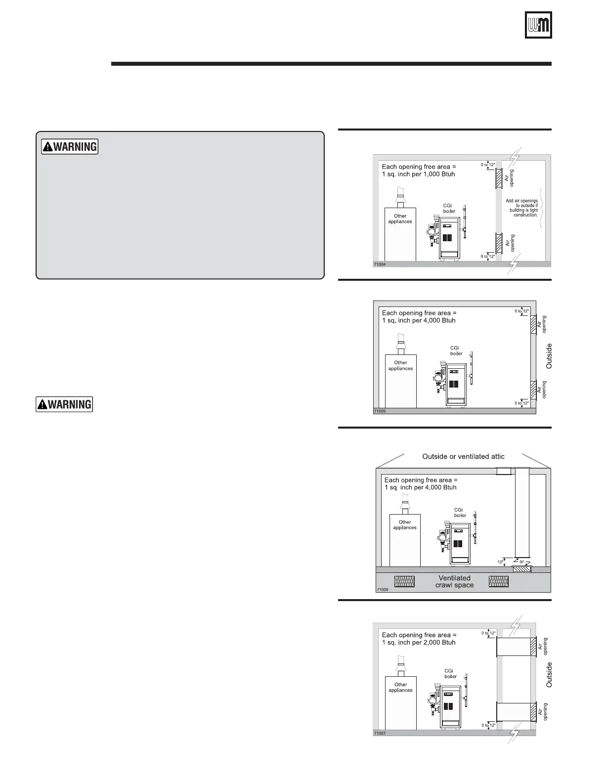 Prepare boiler location — air openings