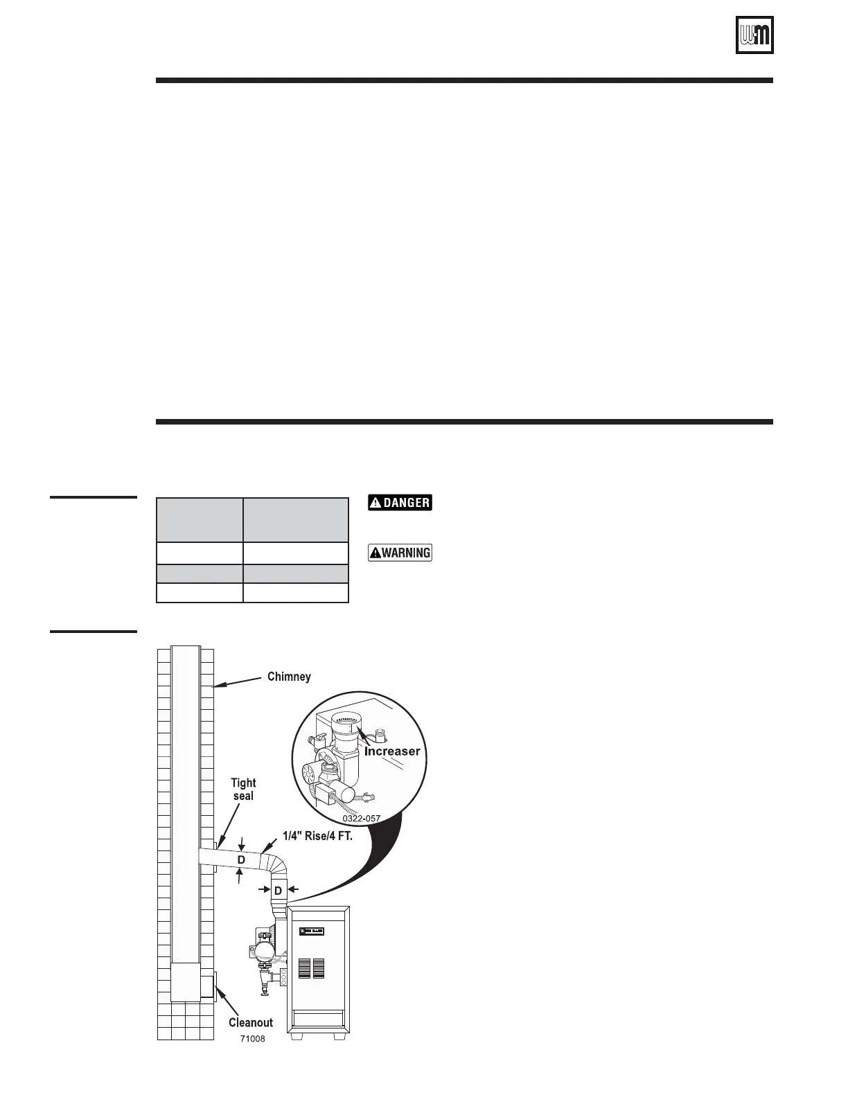 Inspect existing chimney before installing boiler. Failure to