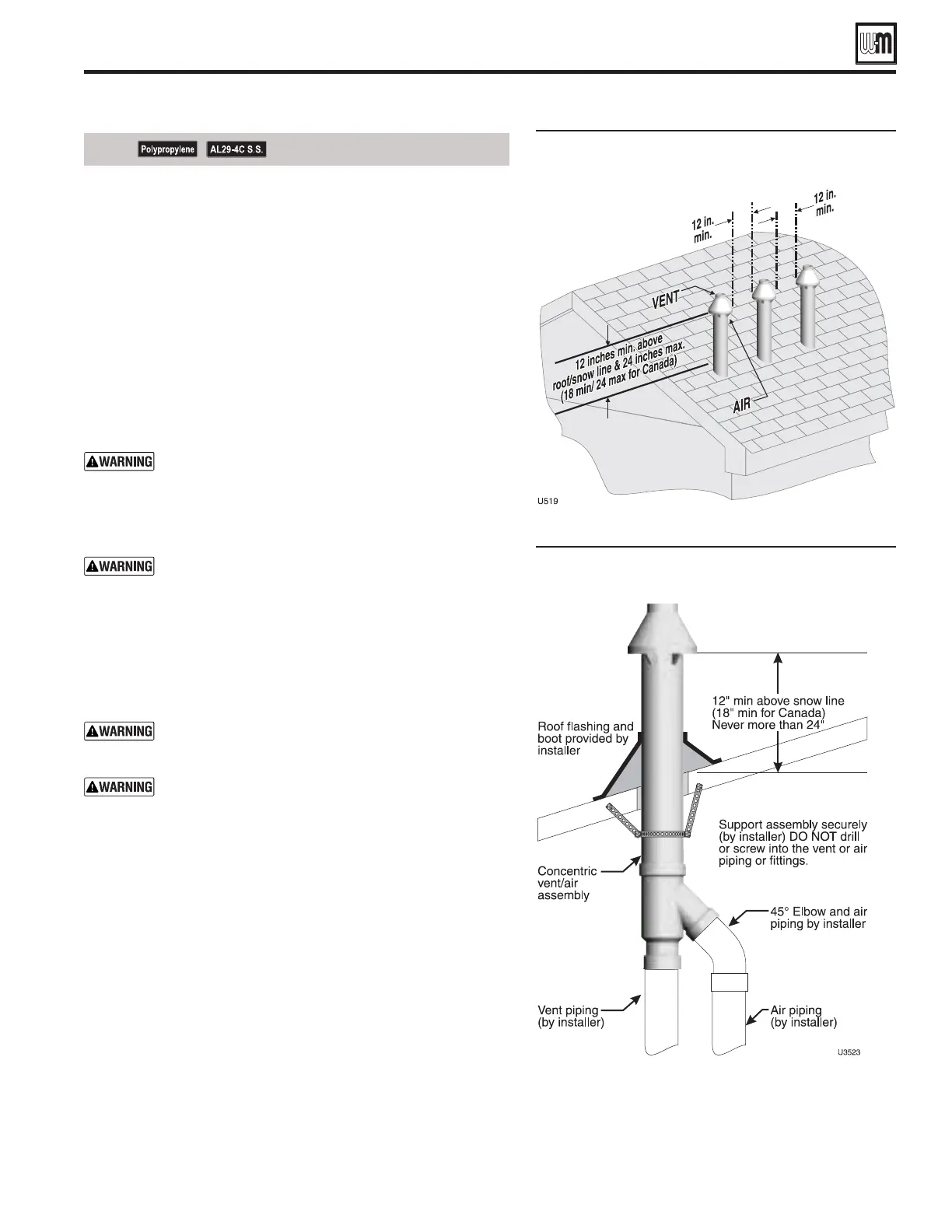 DIRECT VENT — Vertical concentric (continued)