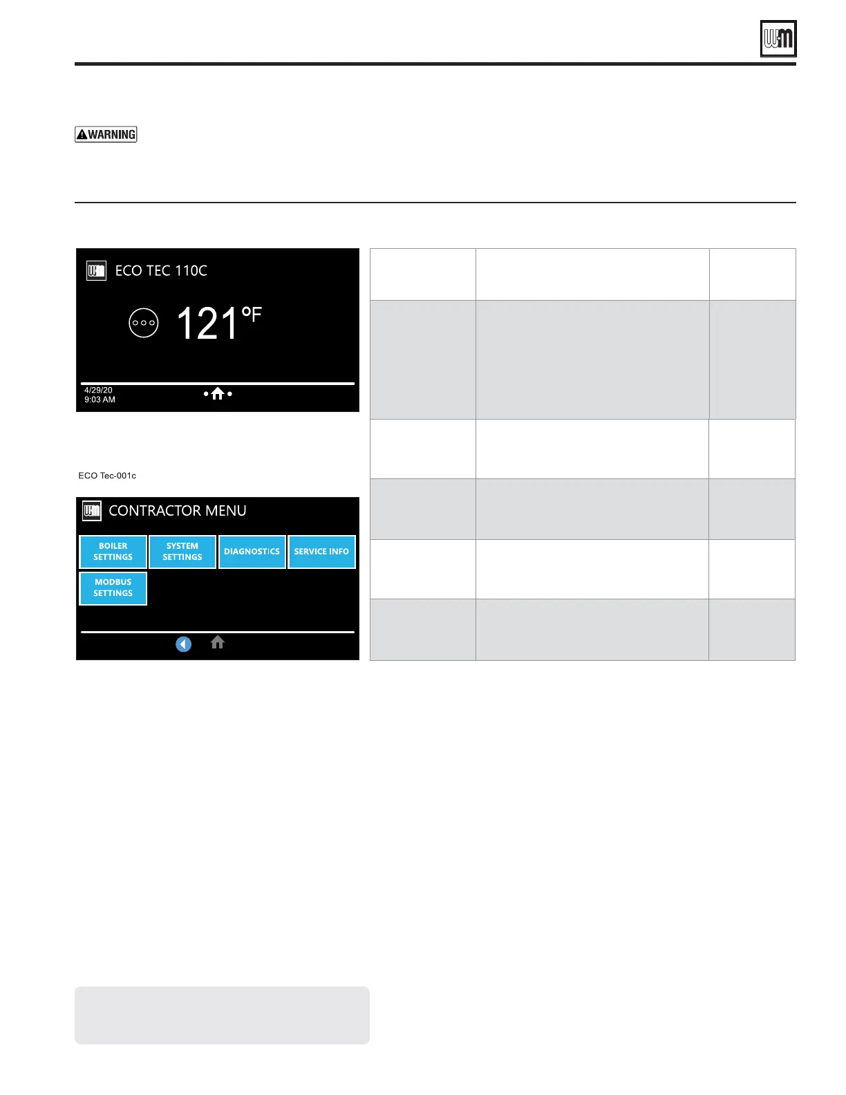 Weil-McLain EcoTec 80 - CONTRACTOR Menus