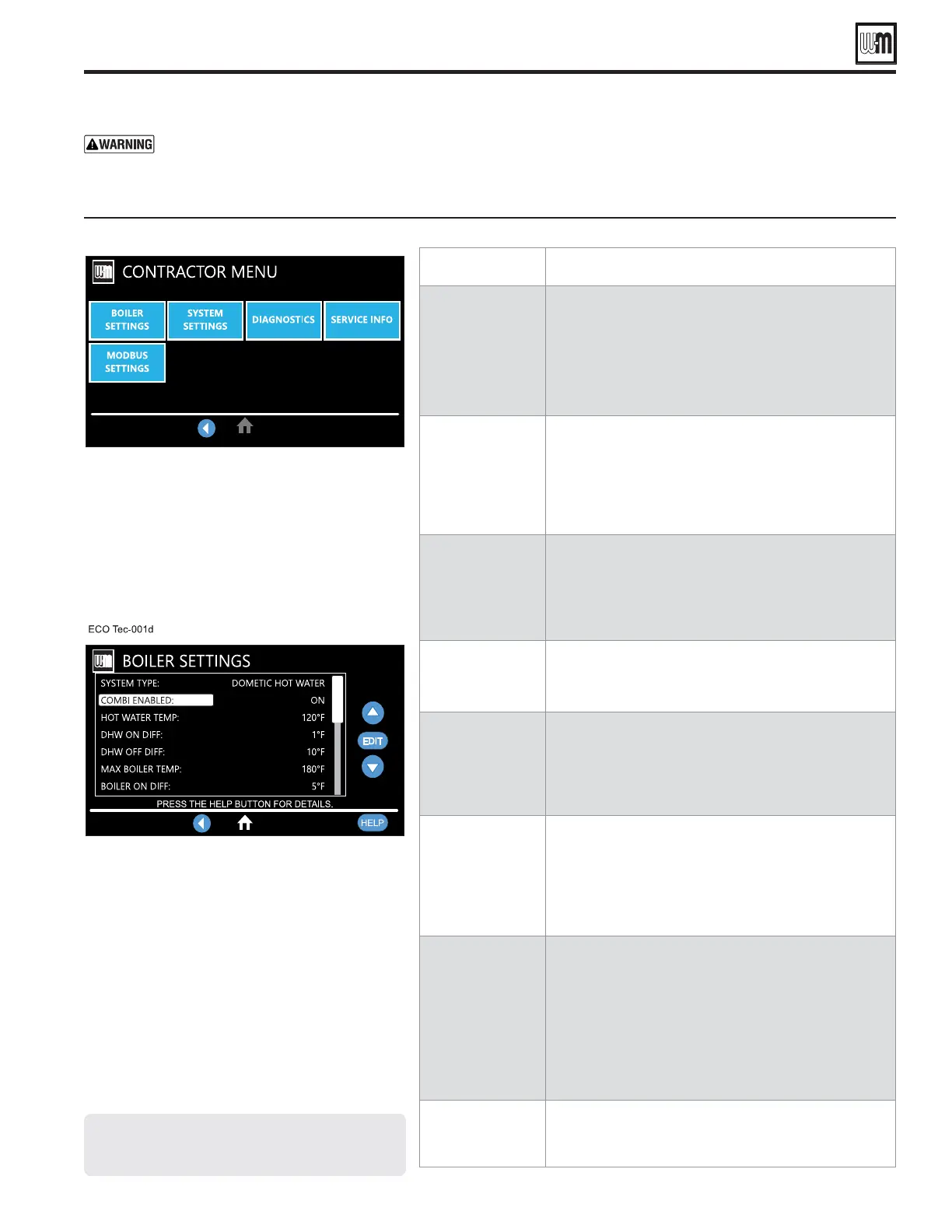 Weil-McLain EcoTec 80 - Priority Setting Screens