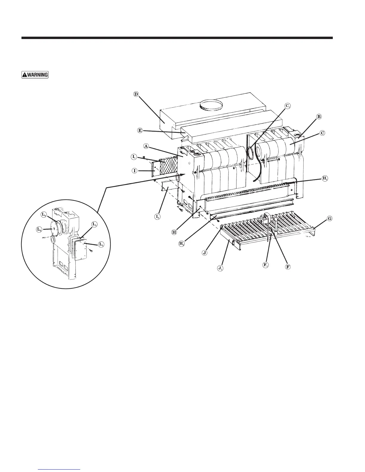 The boiler contains ceramic fiber and fiberglass materials. Use care when handling these materials per instructions on