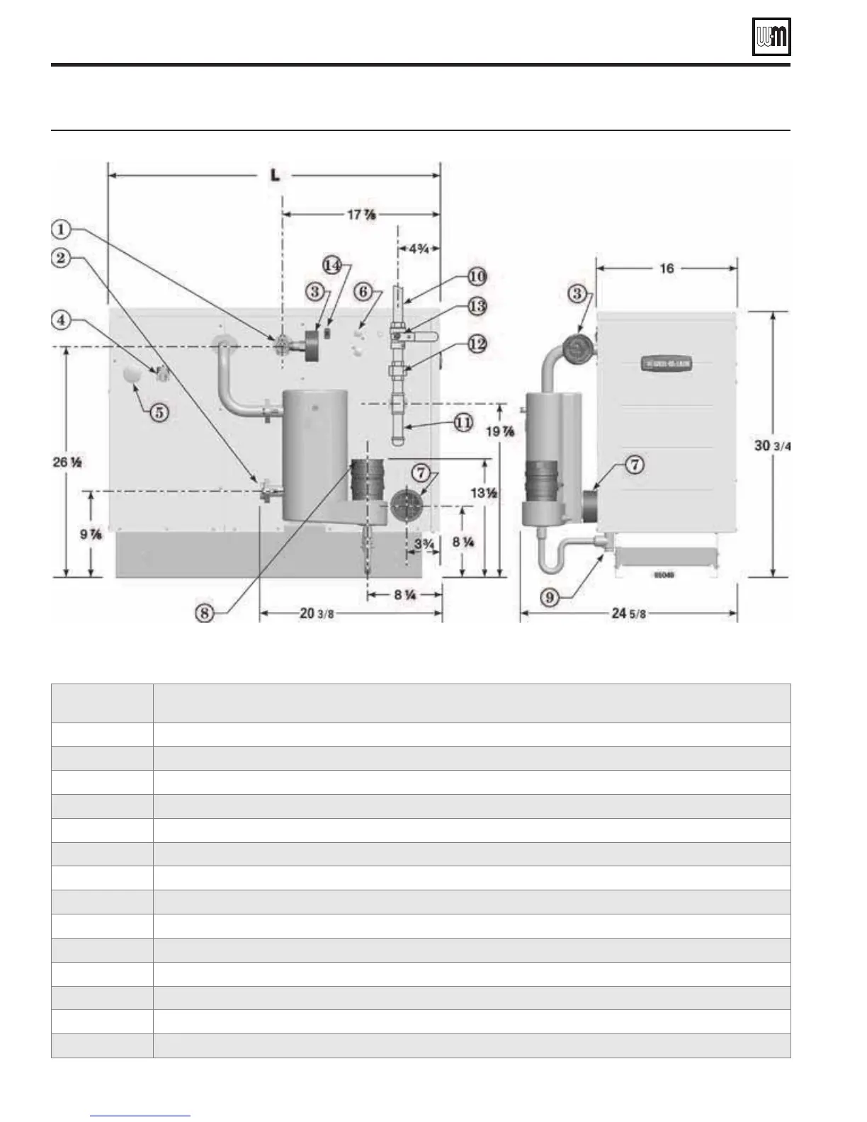 Weil-McLain GV90+ - Dimensions and ratings; Dimension drawing