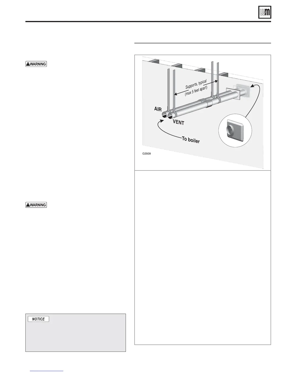 3TEP Install vent and air piping between the boiler and the vent/