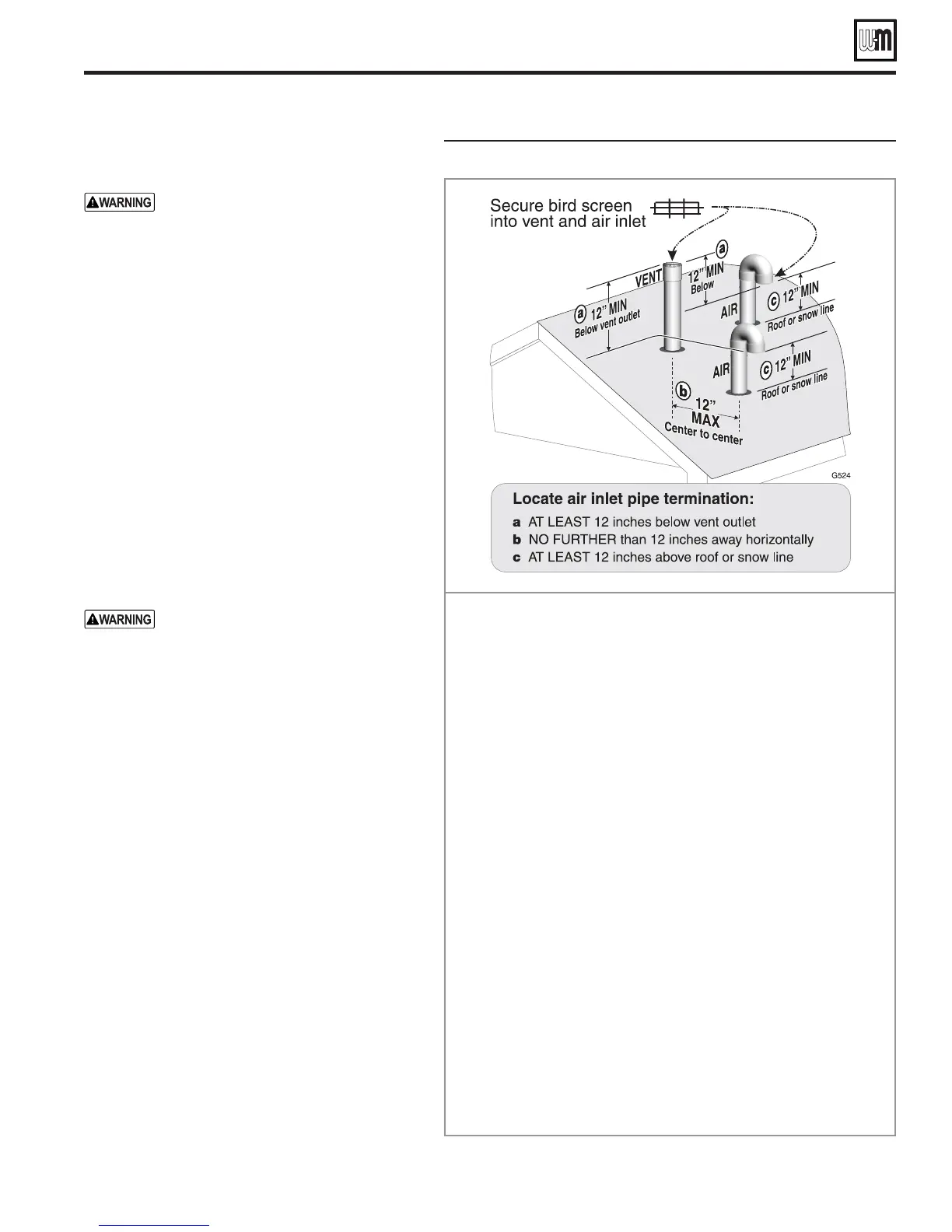 3TEP Use only the vent materials listed in Figure 40, page 33. Provide pipe