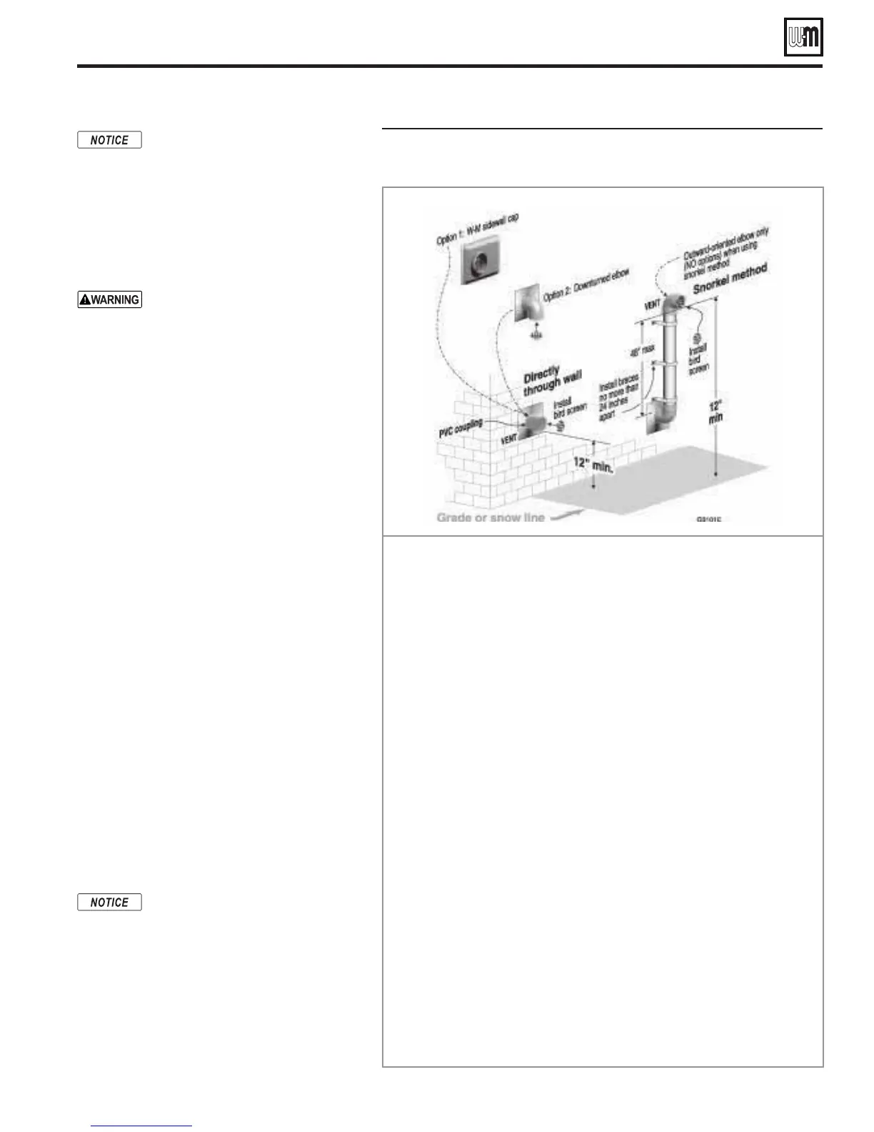 3TEP Install vent piping between the boiler and the sidewall opening. Slope