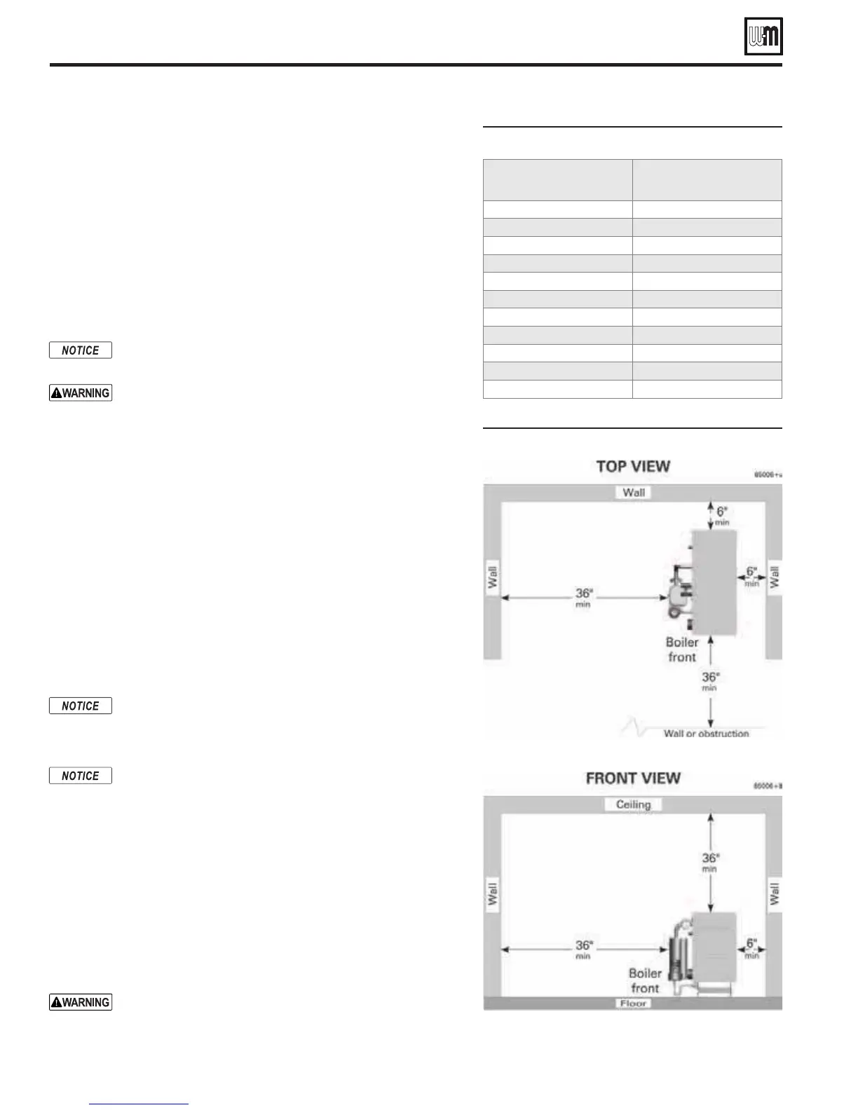 When possible, install GV90+ boilers with clearances at least as large as