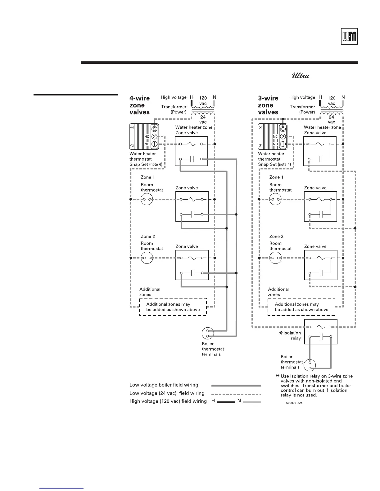 4. Contact rating of water heater thermostat is 0.5 amp at 24 VAC.