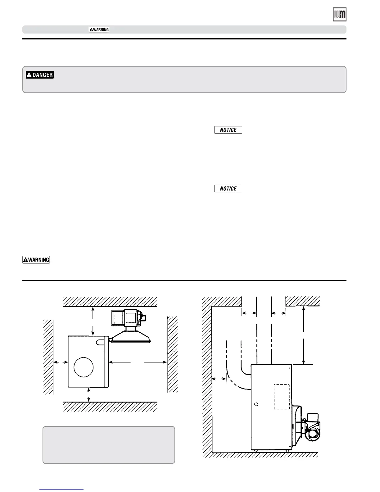 • Combustion and ventilation air supply. See page 9.