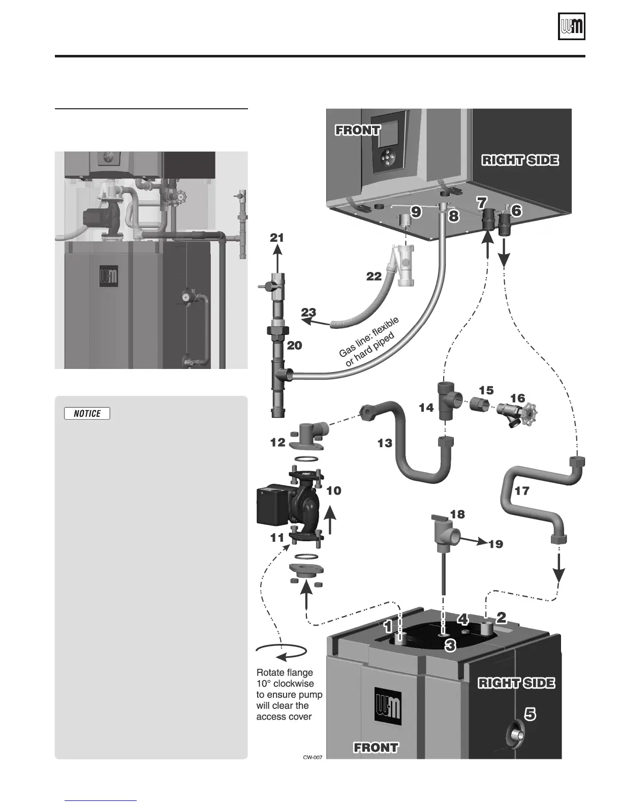 Boiler/CWH piping — 70 or 110 / Right-side mixing valve