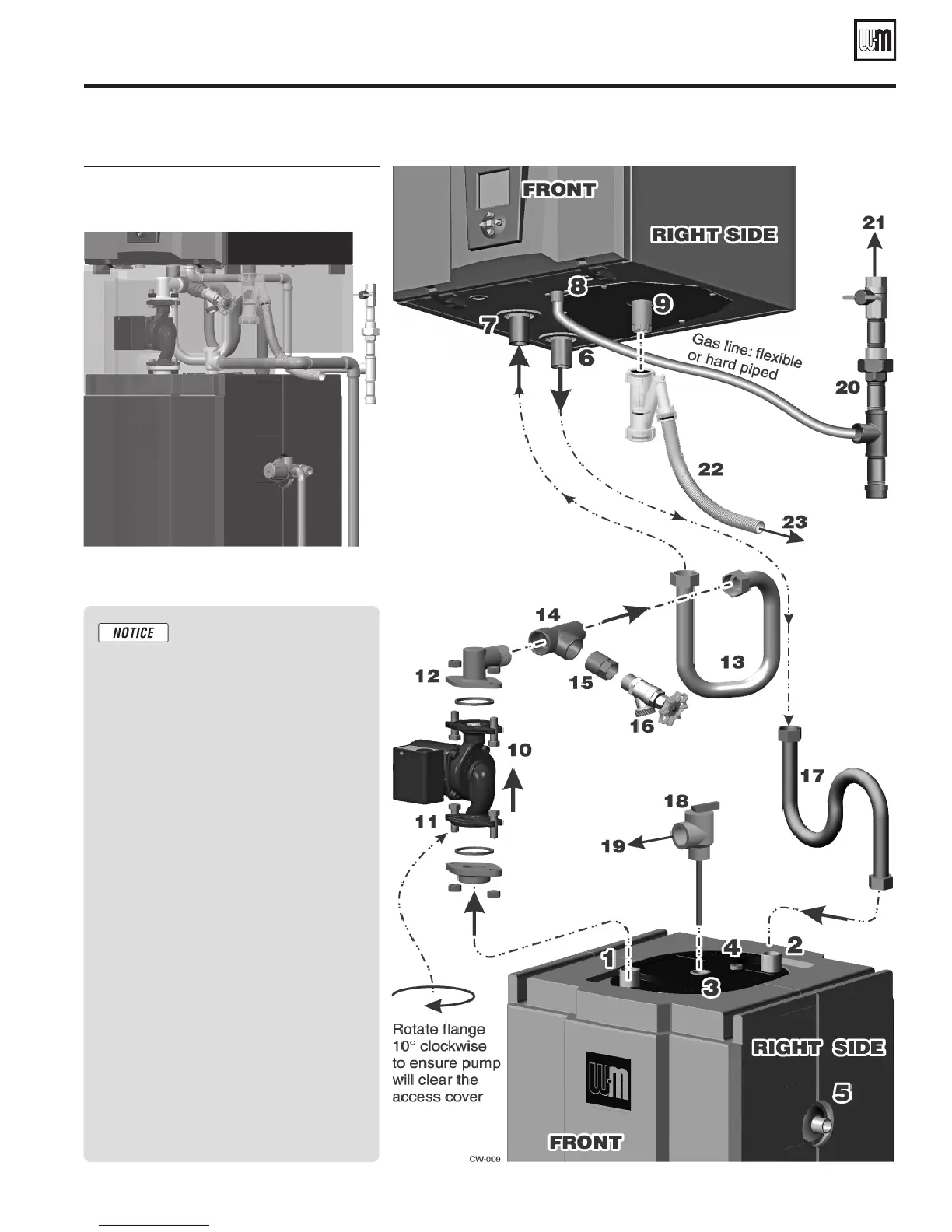 Boiler/CWH piping — 155 / Right-side mixing valve