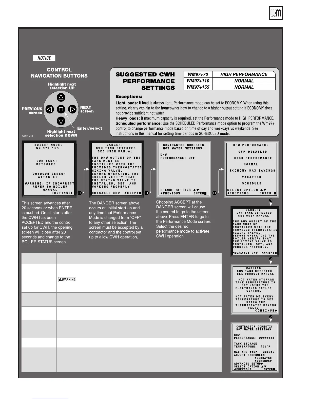 operation. In other performance modes, the WM97+ control will always maintain a minimum