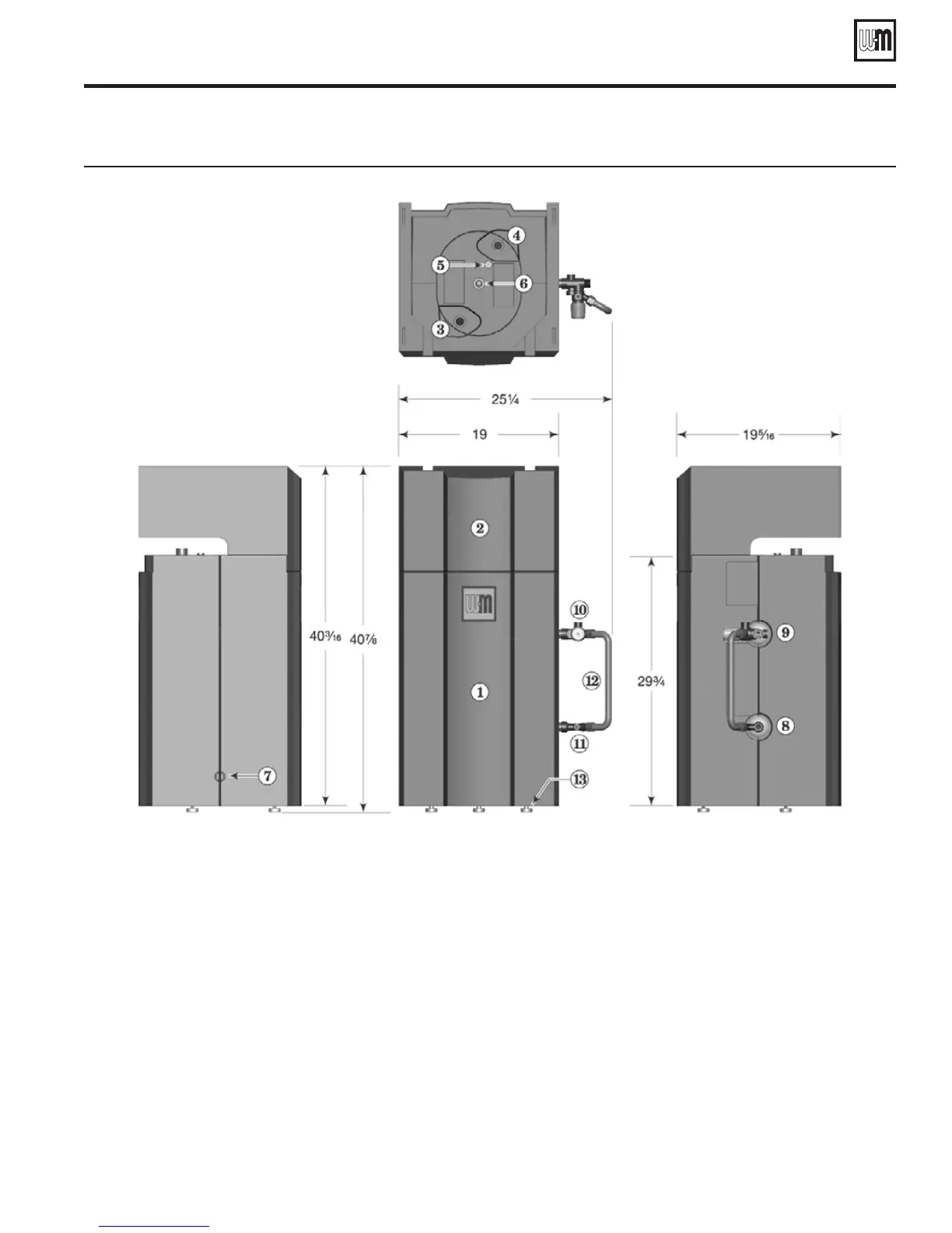 Figure 25 Dimensions — CWH Companion Water Heater, right-side mixing valve orientation — All dimensions in INCHES