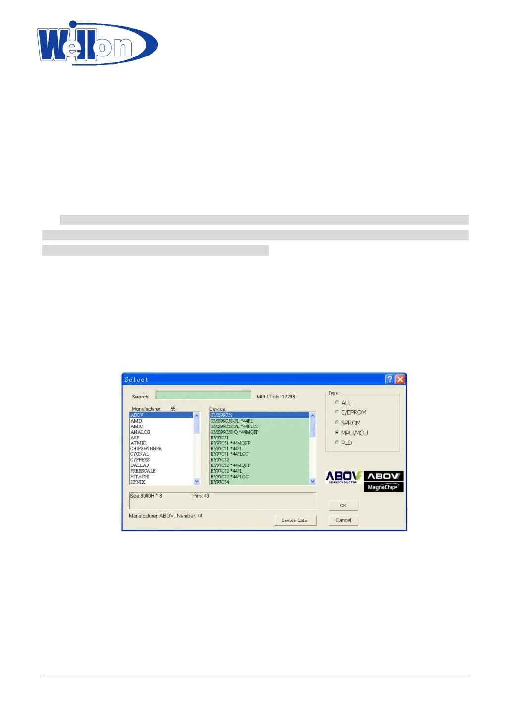 Step One: Select the type of chip in WELLON software. Then, load the data file into the memory buffer.