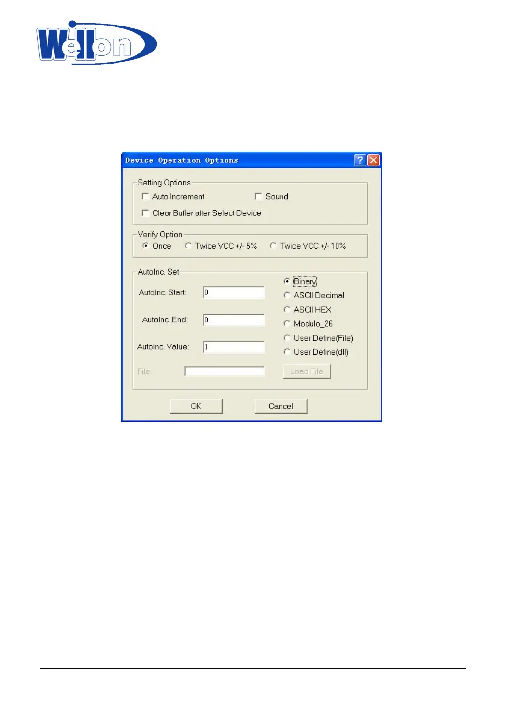 Sound: Click this option if you want the programmer to beep after any operation.