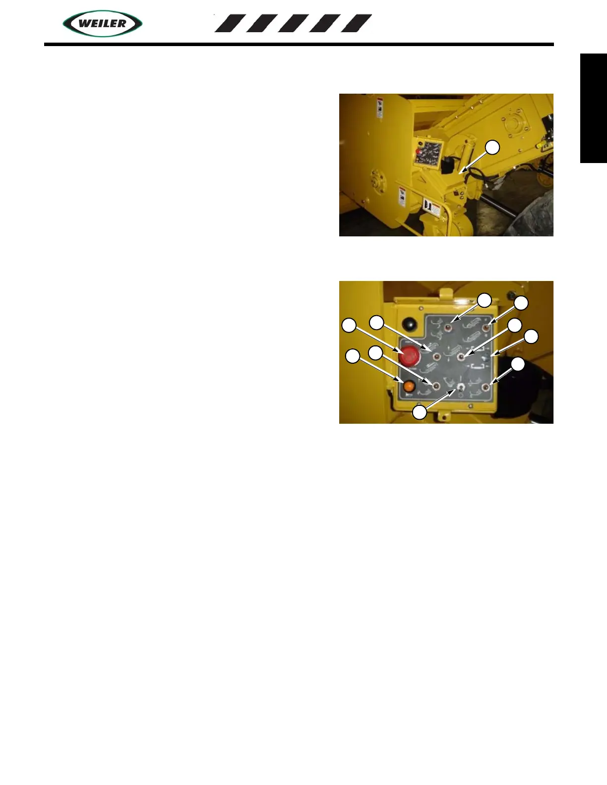 4. Hopper Vibrator Switch- Turns on the vibrator to loosen material built up on the dump hopper. Move and hold