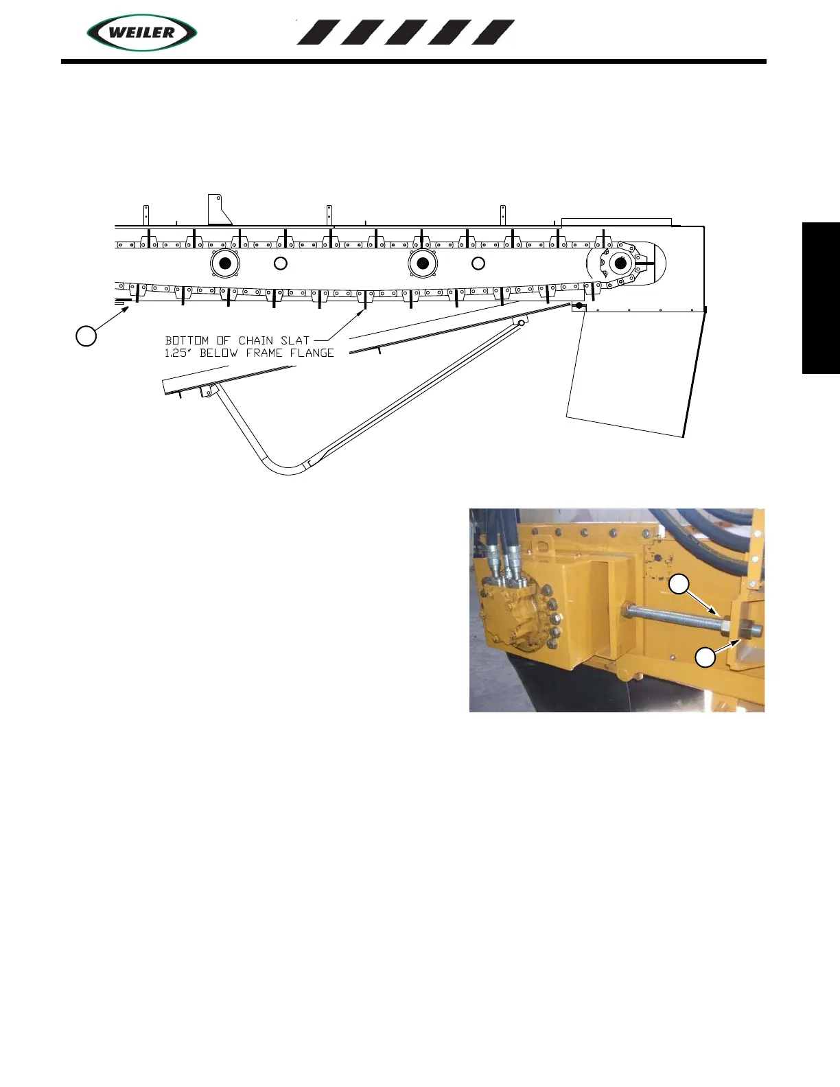 2. Chain slack in the door opening should be 1.25” below the bottom of the frame flange (+/- 1/4”) on the edge of the