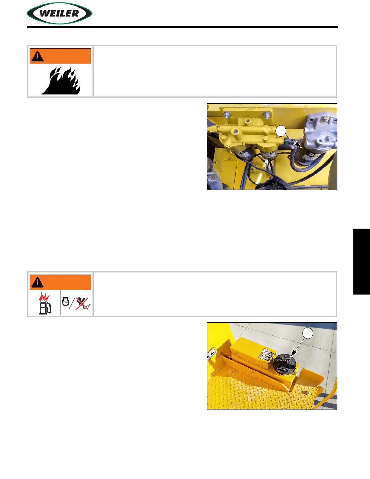 Turn ignition switch off when servicing machine. Clean up fluid spills