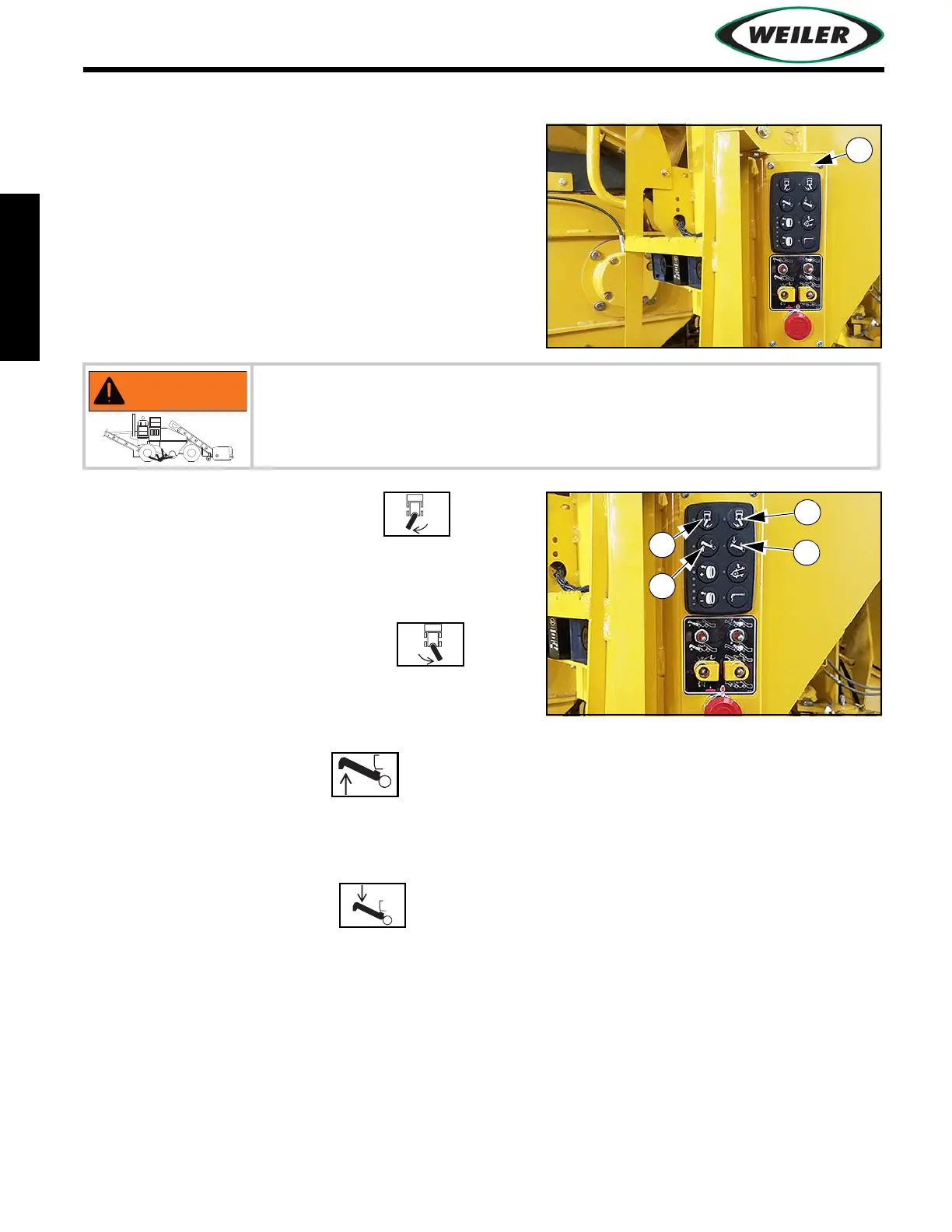 Ensure machine ground drive is stopped and Park Brake is engaged before