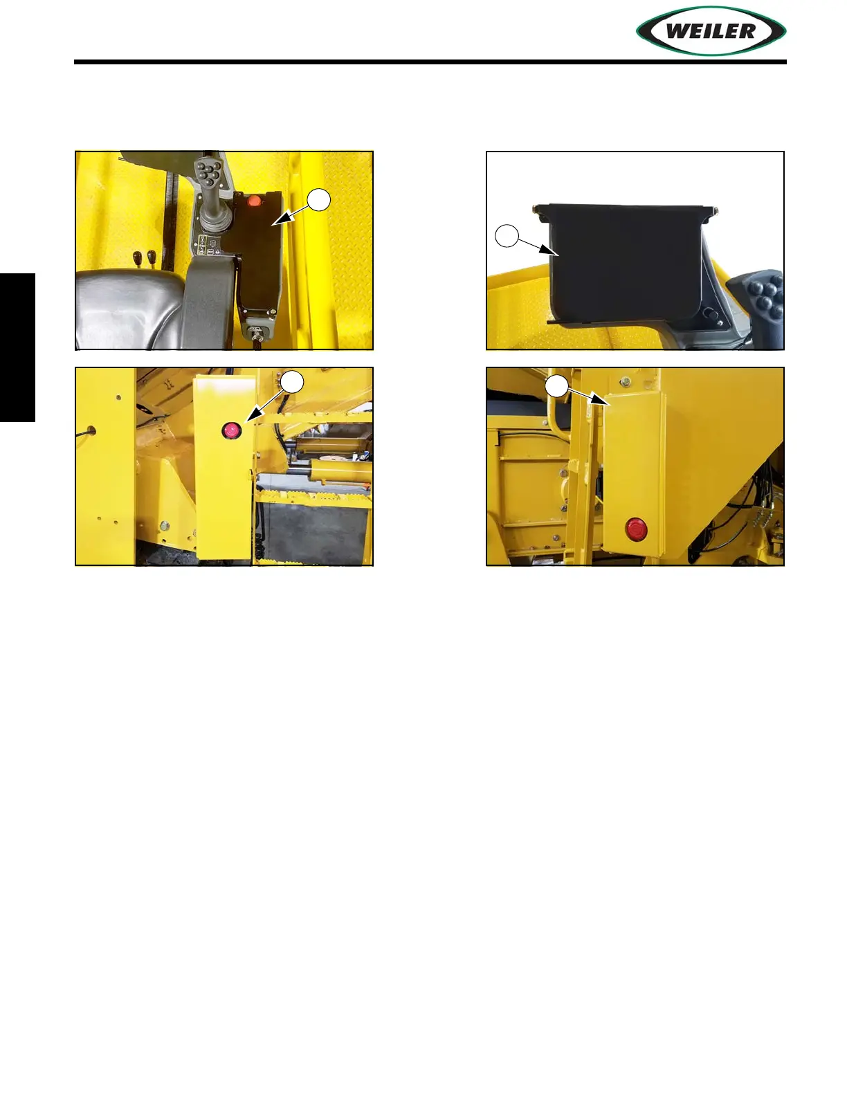 8. If leaving machine in an unsecured area, close and lock center controls (4), dump hopper controls
