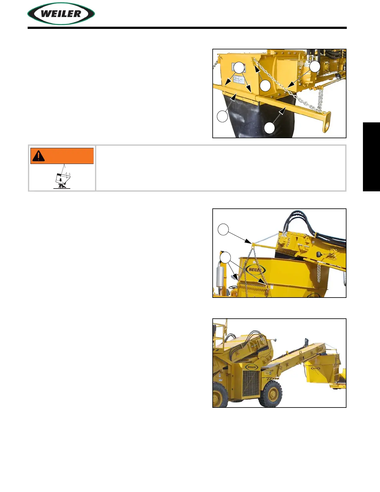 8. Securely attach hopper insert into paver hopper with the chains and binders provided.