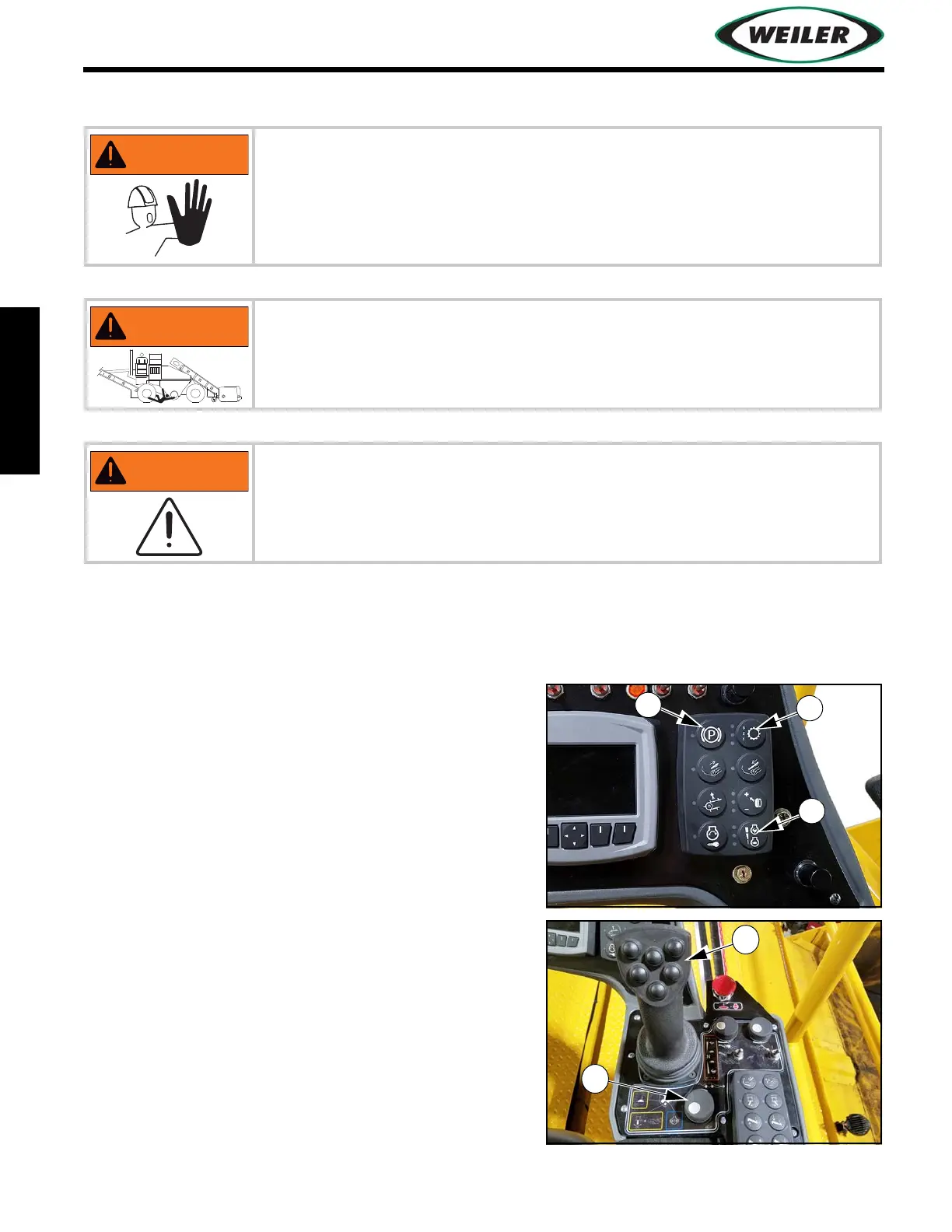 starting engine or moving machine. Ensure area is free of personnel. Keep