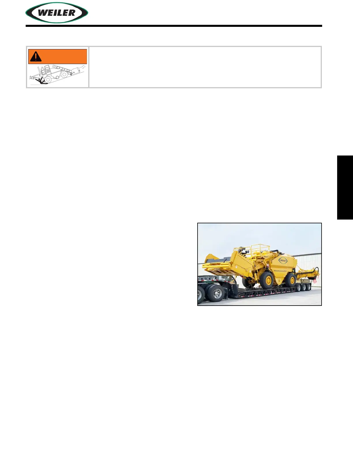 •Before transporting machine on a trailer, read the trailer manual for safety precautions and