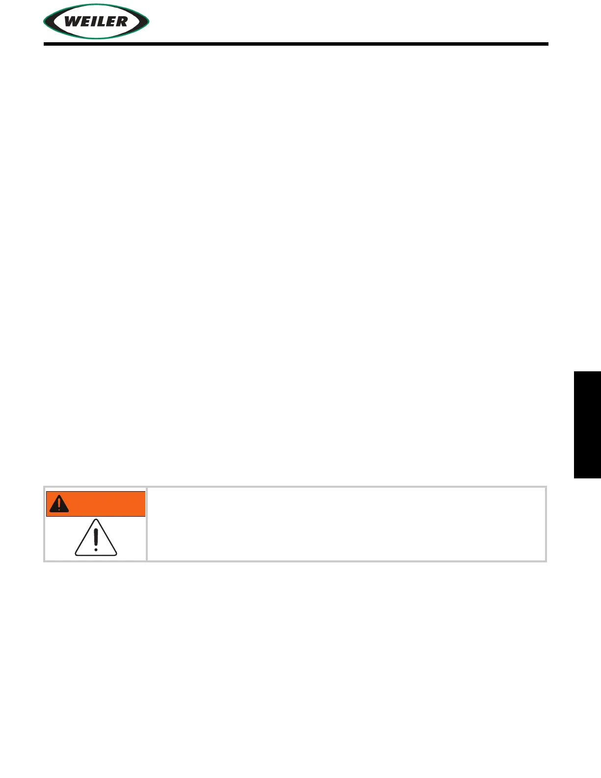 •Make no modifications to machine unless specifically requested or authorized by Weiler.