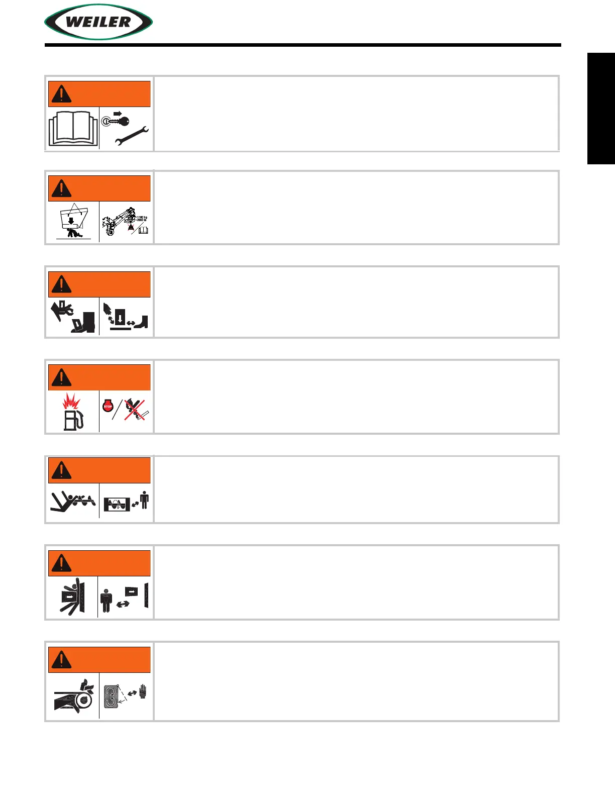 Lifting device is designed only to lift approved Weiler hopper inserts. Do