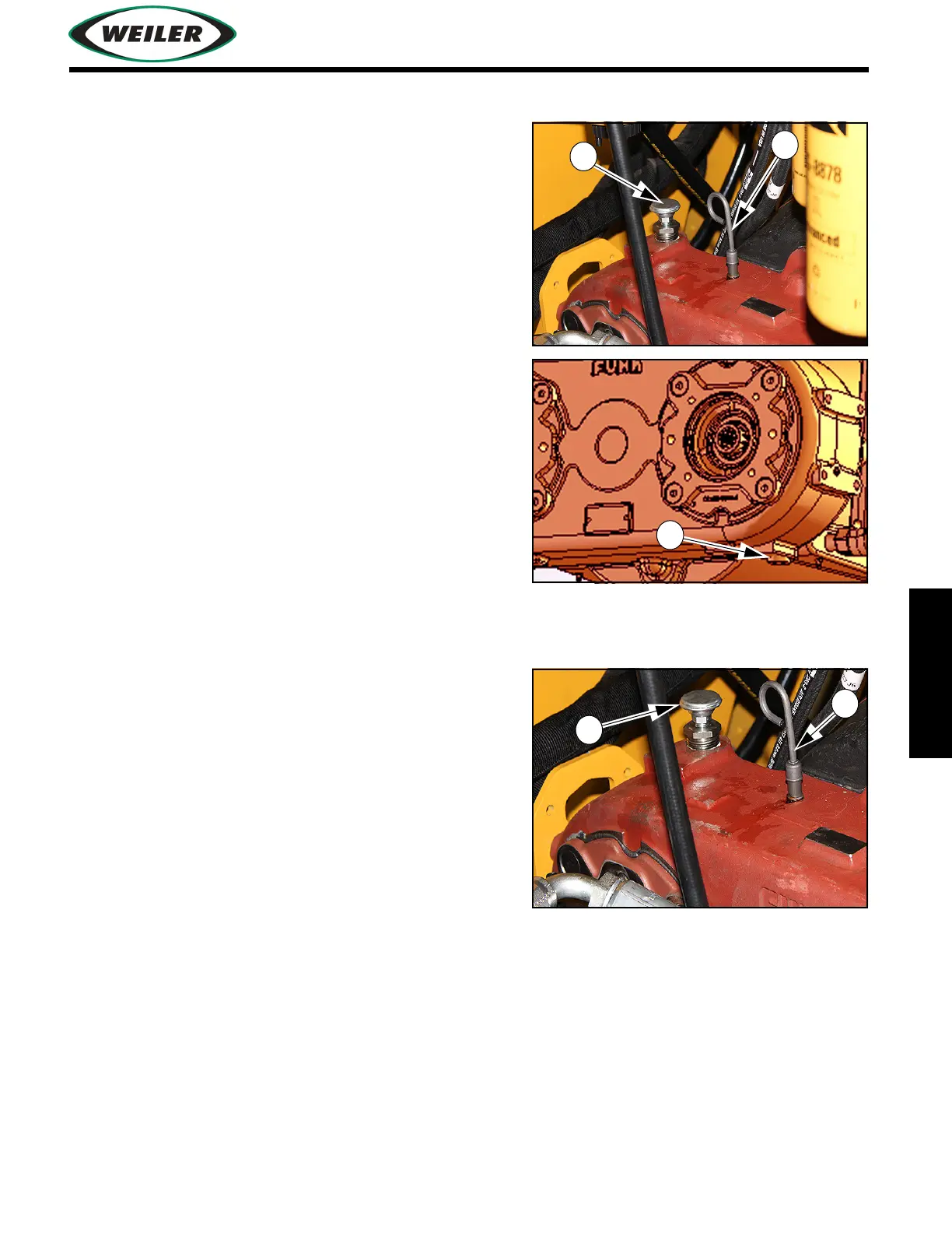 4. Refill gearbox at breather/fill port (1) with 1.5 gal