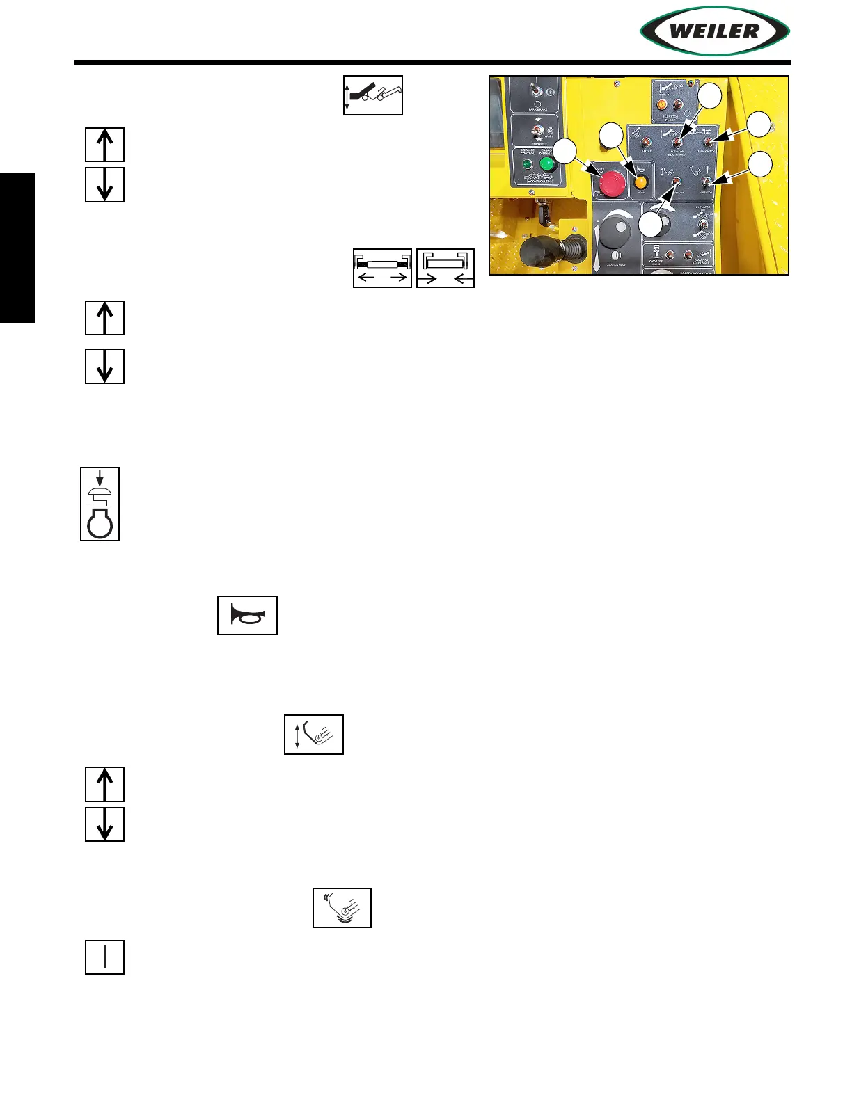 Push up to raise dump hopper.