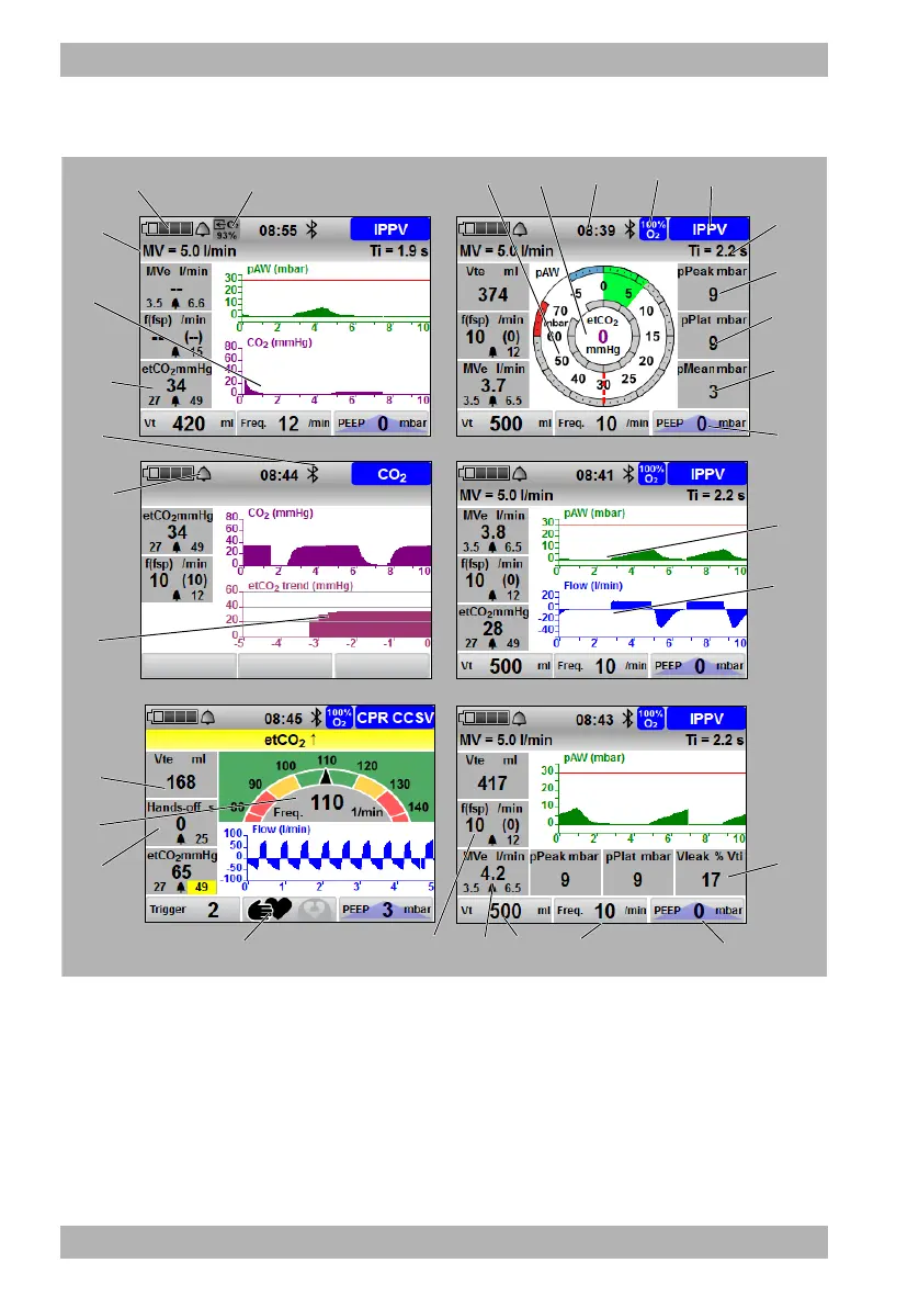 4 (pressure, flow curve) (center right), 5 (CPR CCSV)