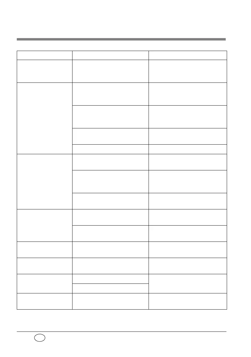 Fault Cause of fault Remedy
