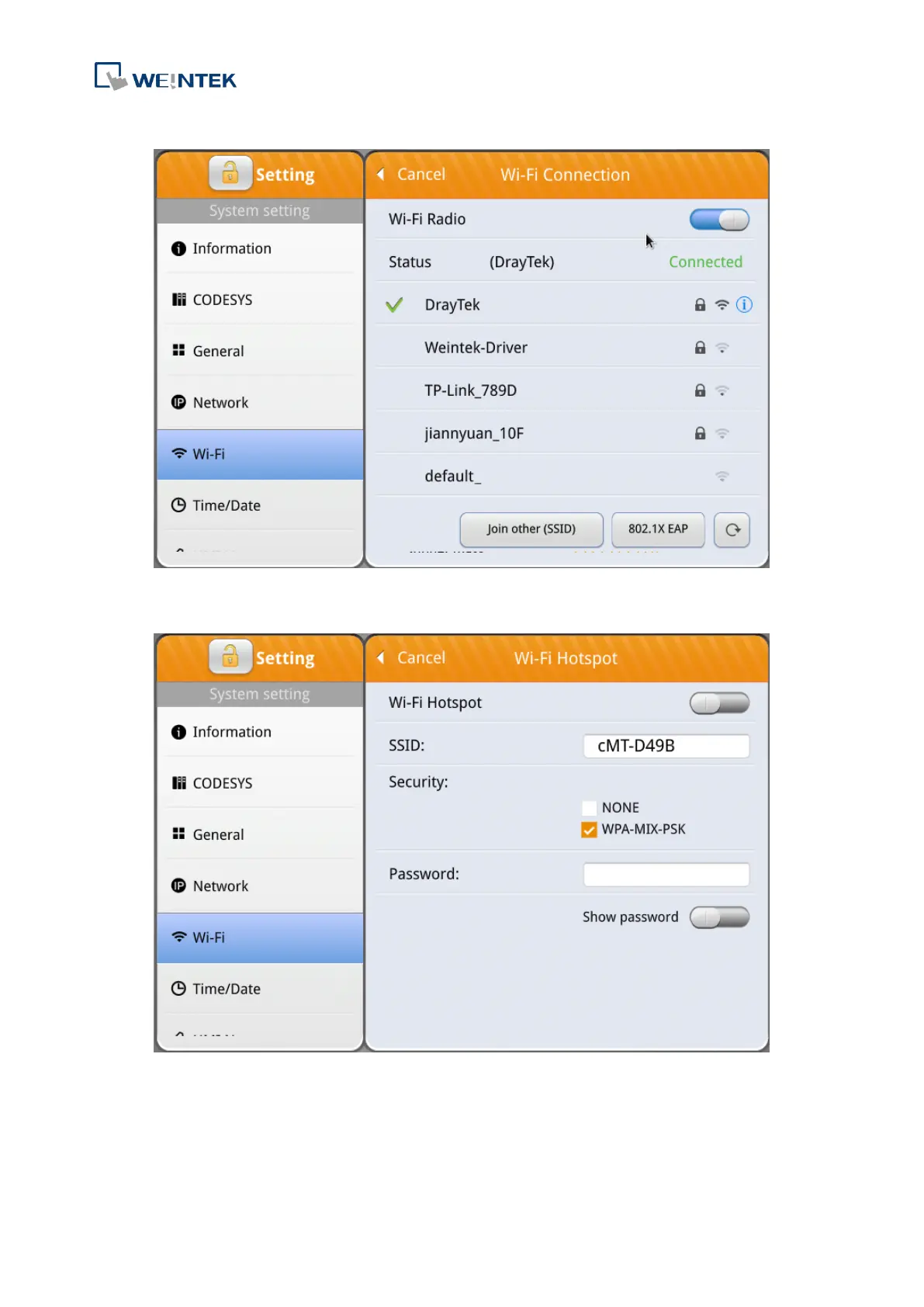 Wi-Fi Hotspot: Make the HMI a wireless hotspot to share internet connection if needed.