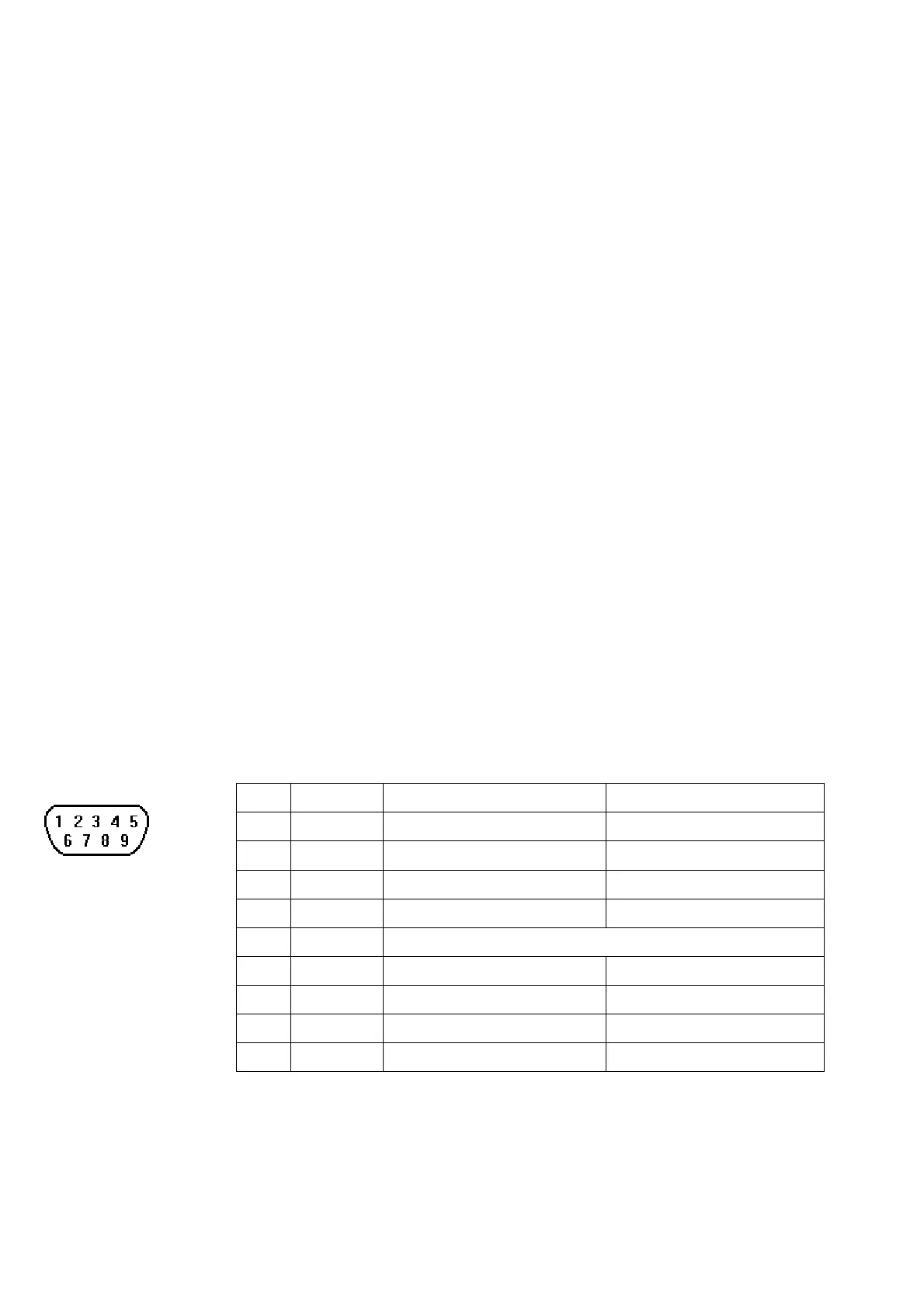 Pin assignment of the 9 Pin, Male, SUB-D, COM1 [RS-232] and COM2 [RS-232] Port.