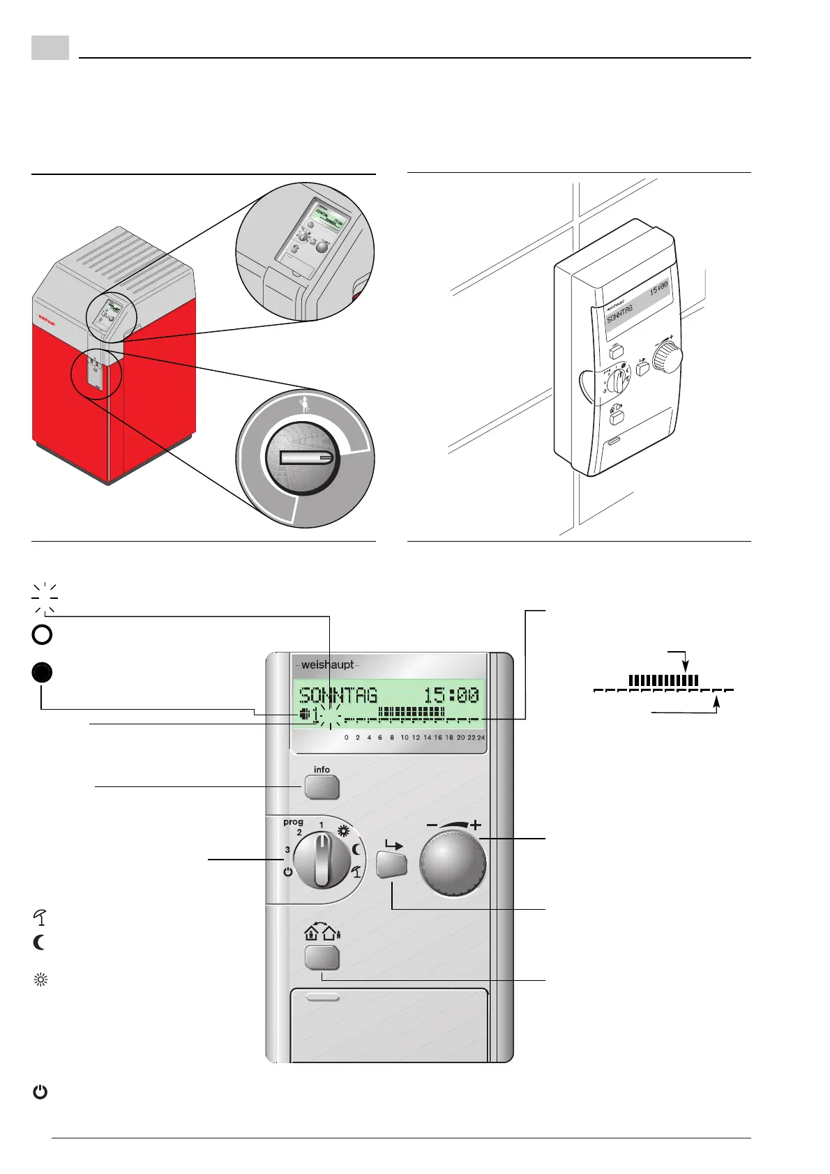 ❑ The operating unit must be fitted to the boiler cover or the wall bracket.