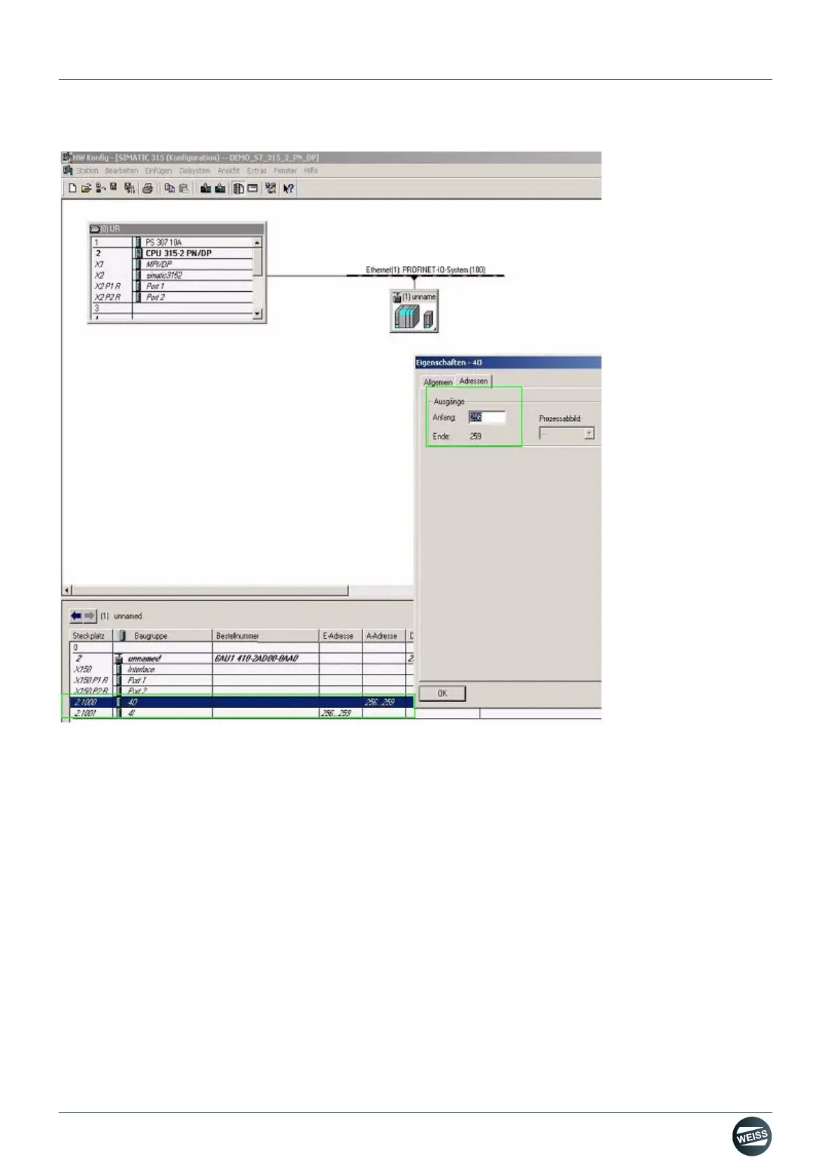 • To test the configured connection, a corresponding variable table can be created in the SIMATIC Manager.