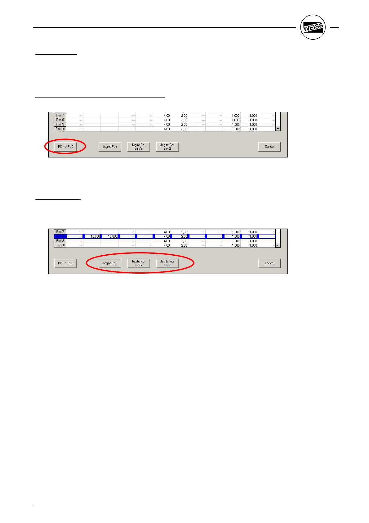 PLC button to transfer the positions to the PLC. There, the positions are permanently stored.