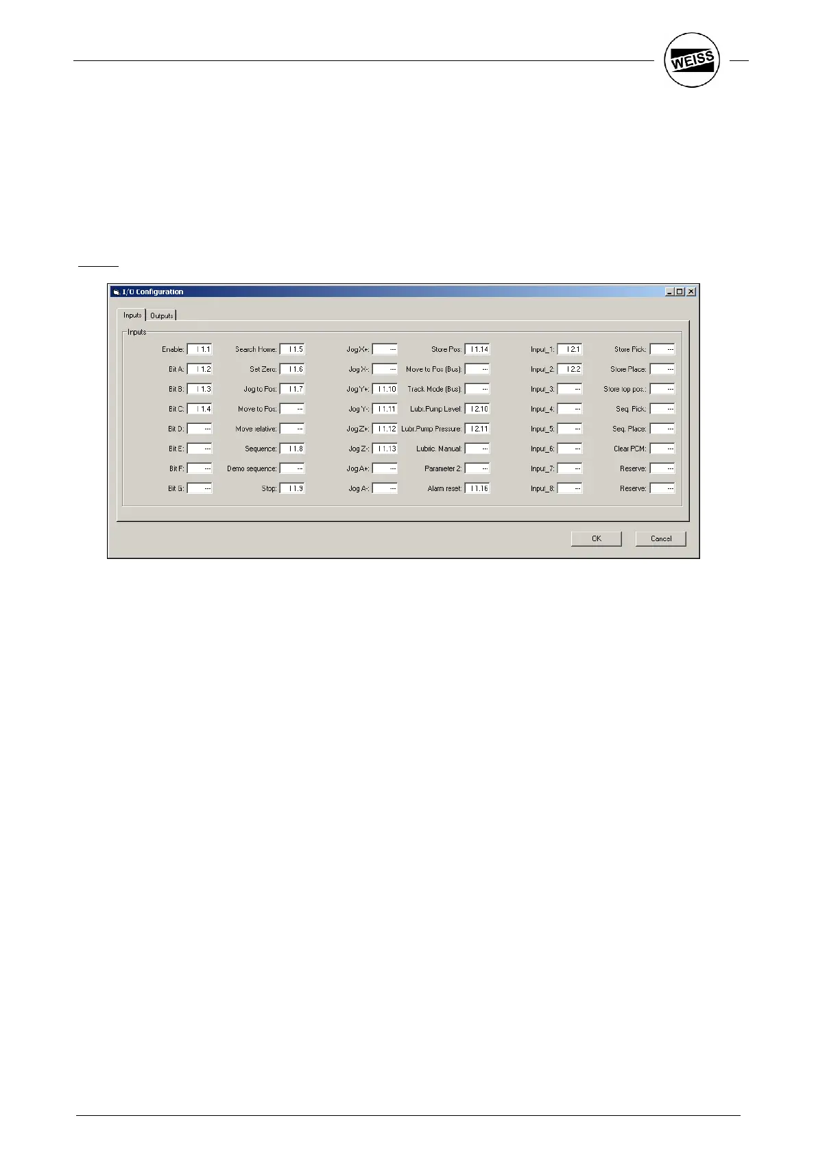 The dialog for configuring the inputs and outputs is accessed using the "I/O config" button in the Tools ->