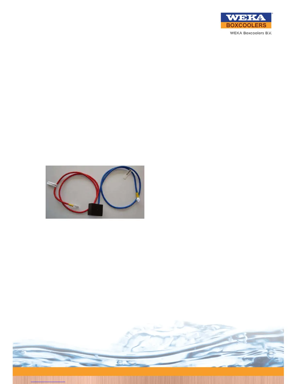 The WEKA Guard consists of a small box with two wires, a blue and a red one.