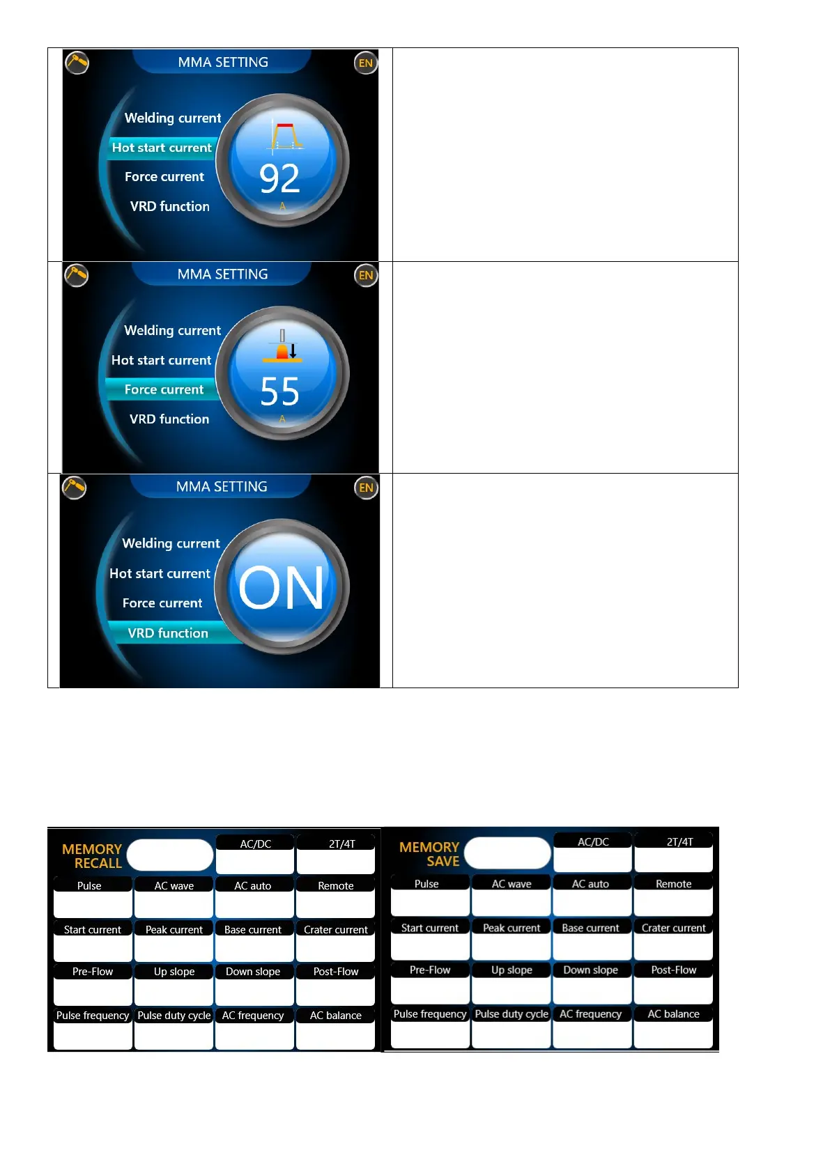 Questo modello di saldatrice prevede la funzione di salvataggio e richiamo dalla memoria. Ha fino a 18 posizioni di
