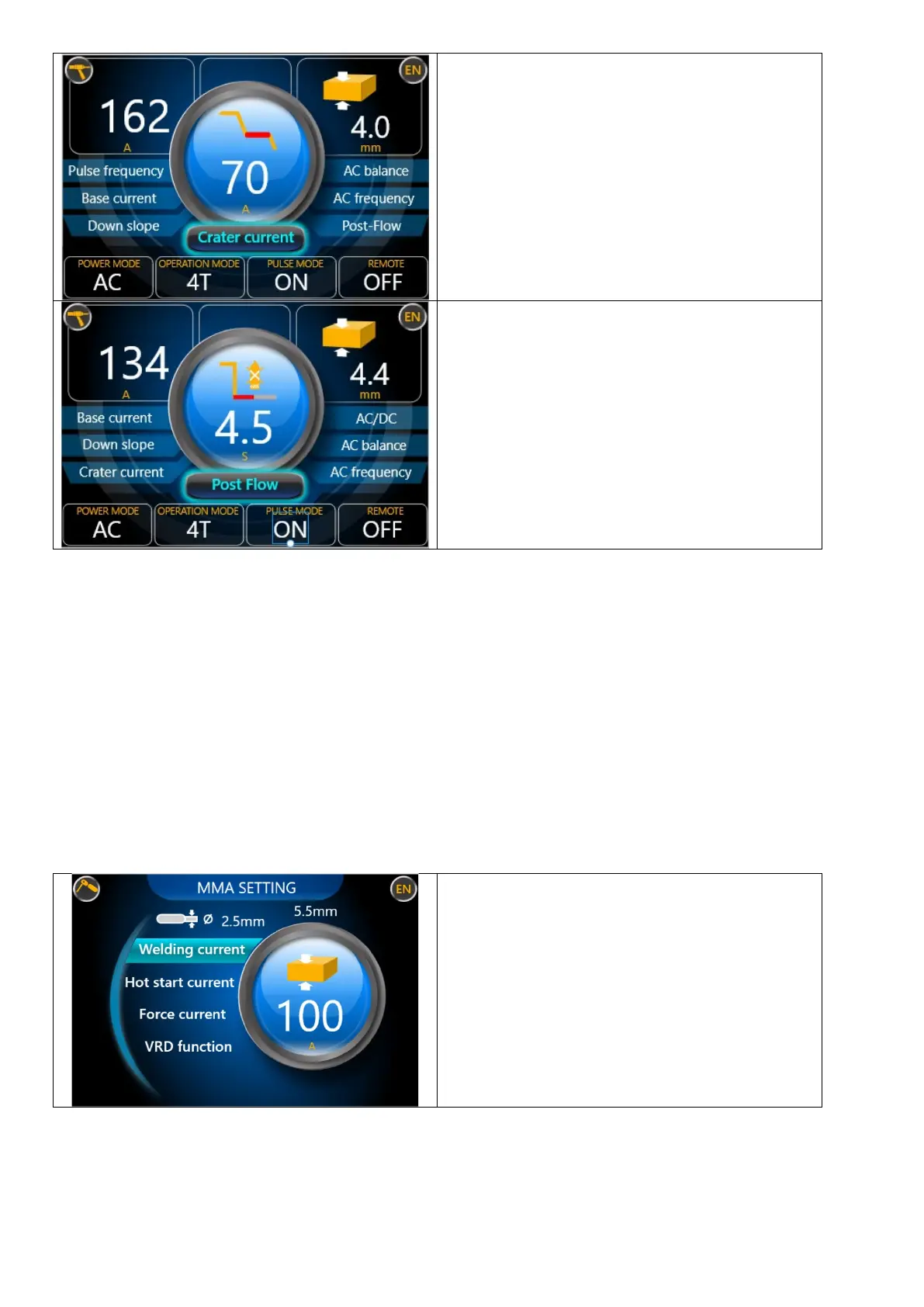 Indítás: Válassza ki az MMA hegesztési módot.